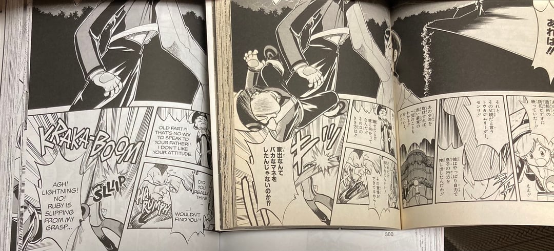 Crys being slapped by her mother and Ruby being punched by his father are censored in the American version of Pocket Monsters Special (Pokémon Adventures).