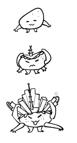 Just sketching out ideas to fill out my dex for Palacha, a region based on the Great Lakes and Appalachia. First one is further along, it's a based on a handful of lizards including gila monsters, collared lizards, and fat tailed geckos. It's a Dragon / Poison type. Other line is based on potatoes, baked potatoes, french fries, potato batteries, and mad scientists. Ground to Ground / Electric type
