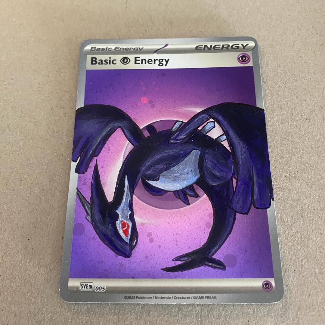 Hand-painted Shadow Lugia on a holo Psychic Energy card by ArtsofBambi Write A CommentYou must be logged in to post a comment.