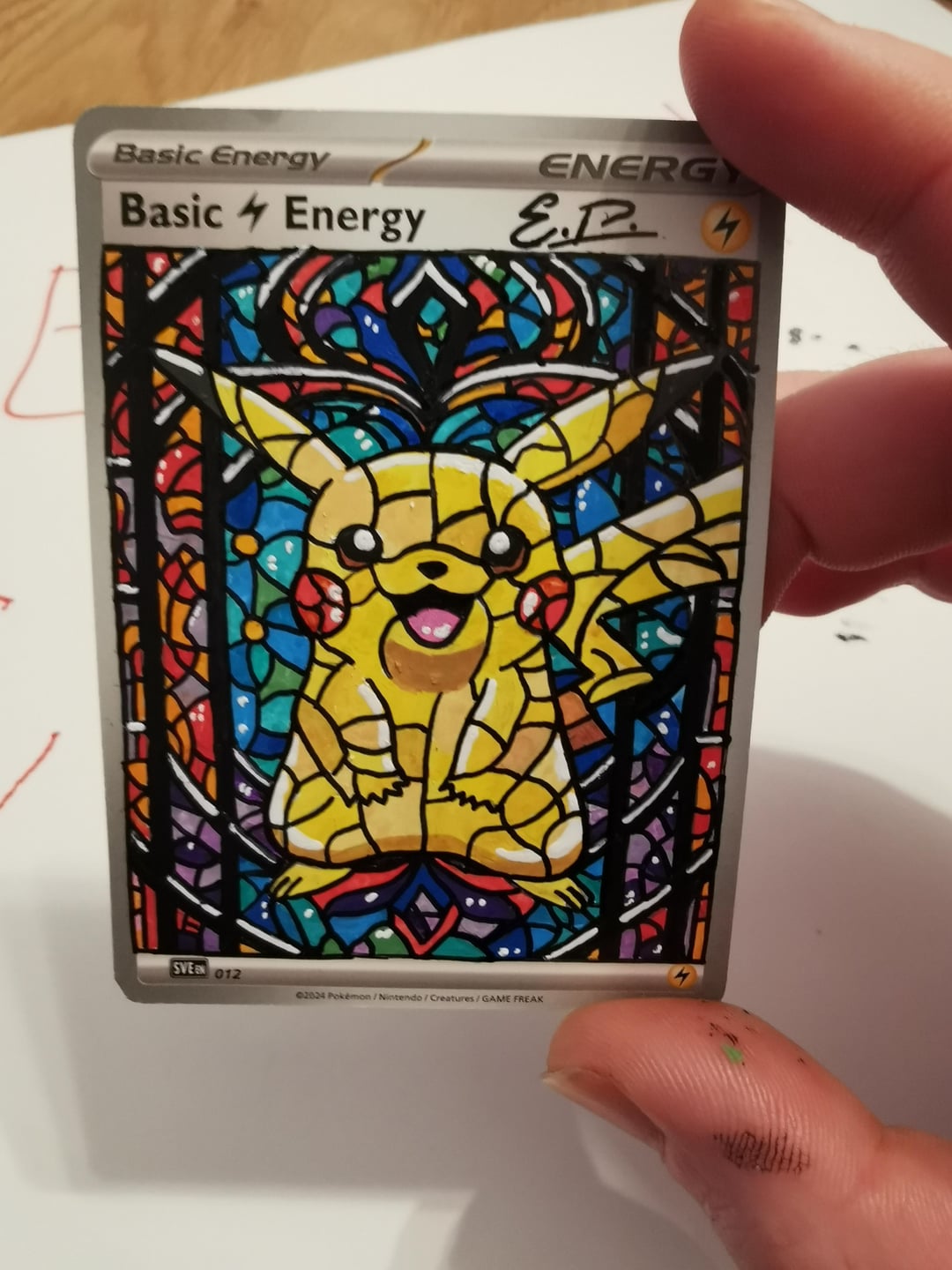 Stained glass Pikachu – start to finish added to my binder. by Ill_Relative9891 Write A CommentYou must be logged in to post a comment.