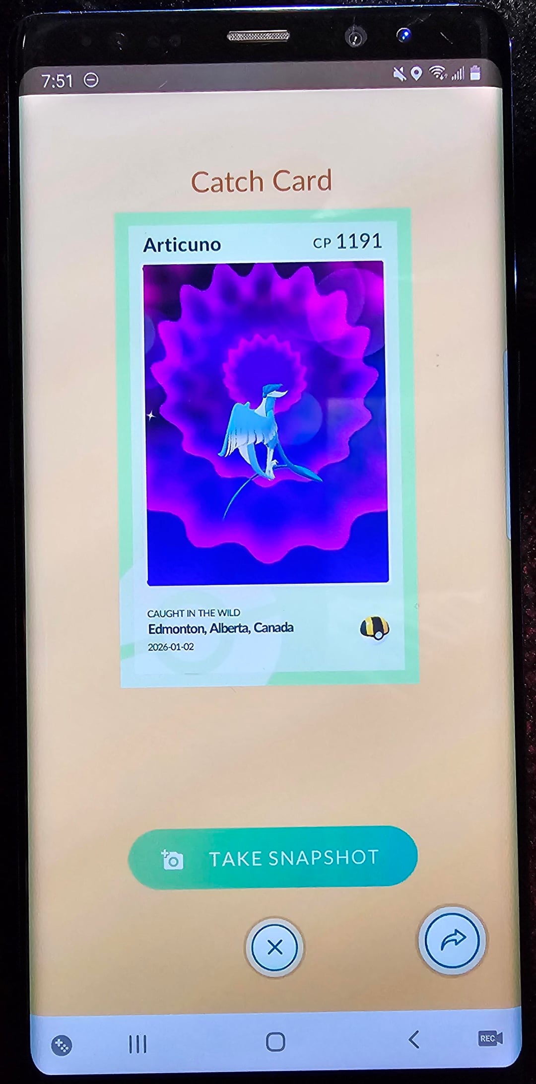 Fastforward to today, we were going to be driving for a few hours so I let the boy play for a bit. He gasps and says "this looks so cool!" and hold his phone so I could see it in the mirror. The little turd found found and caught a wild Shiny Galarian Articuno!