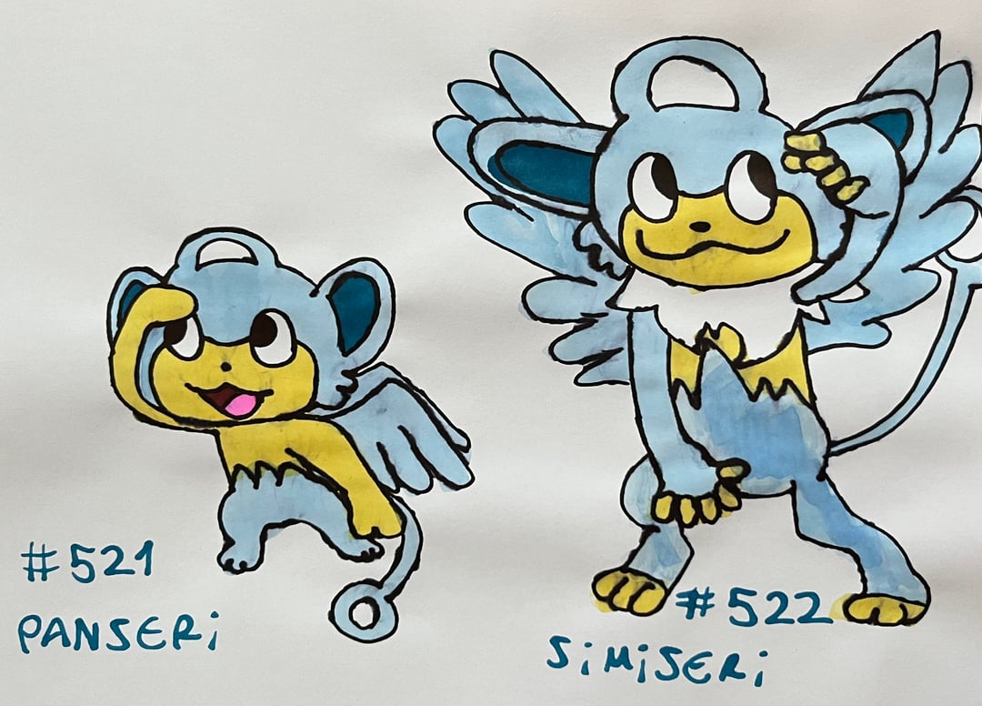 On the next three photos there are fanarts of Panseri along with its evolution Simiseri, both by the same artist and both Flying types