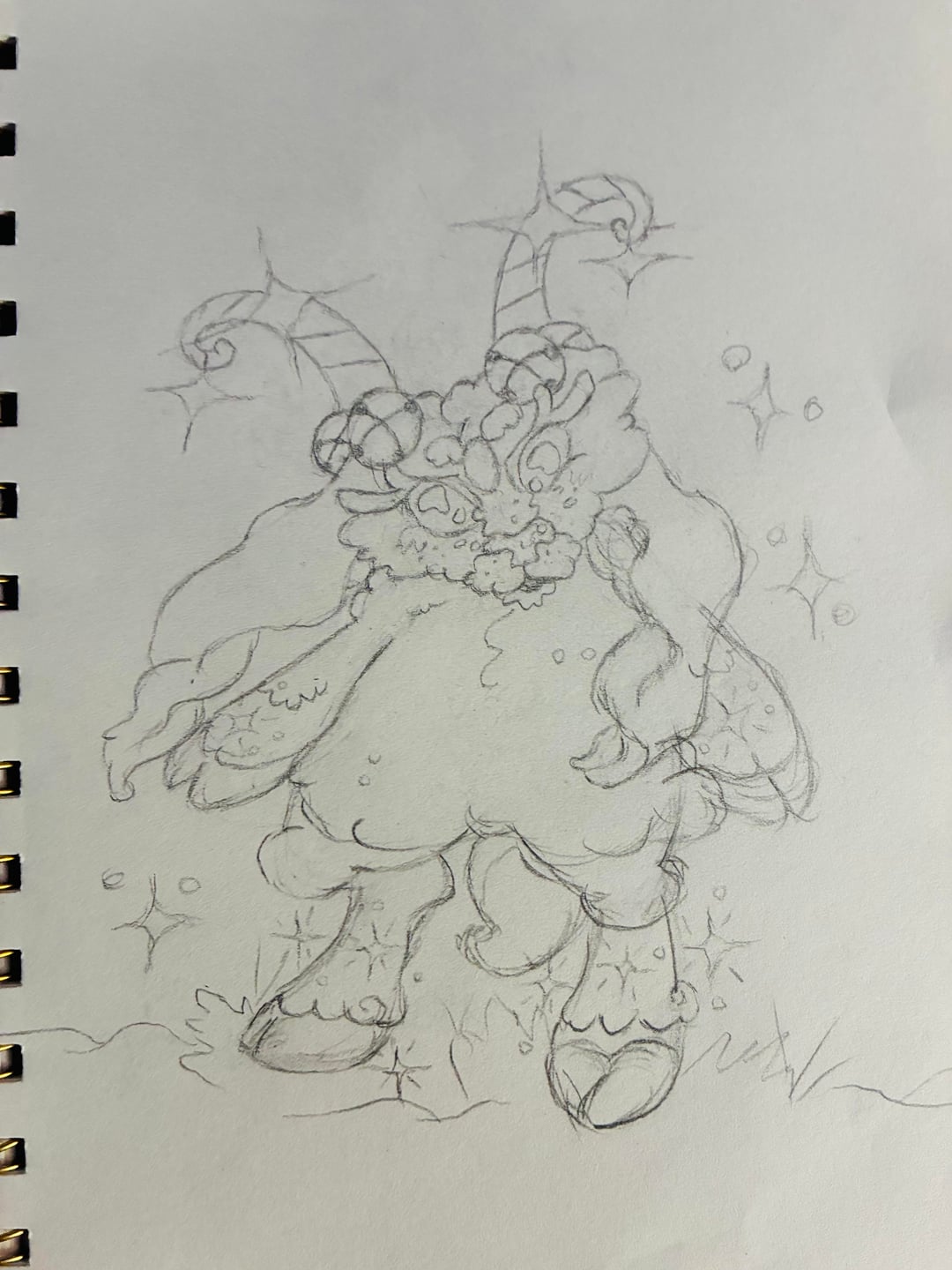 They’re fairy/psychic type pokemon. Kambi is beloved for being a cheery cute charming Pokemon bouncing around with a jingle when very happy. Despite this though many mistake their evolution Stampus for being a dark dragon type at first due to their hulking size,sharp eyes,and horns. Though Stampus actually have a generous peaceful nature,and usually are only defensive fighters in the wild. They love carrying around heeling berries in their sack to give out to injured Pokemon they come upon. Kampi’s moves would be Healing Wish,Fairy Wind,Babydoll eyes,and Heart Stamp. While Stampus’s moves would be Dazzling Gleam,Psychic,Heal Pulse,and Hypnosis.