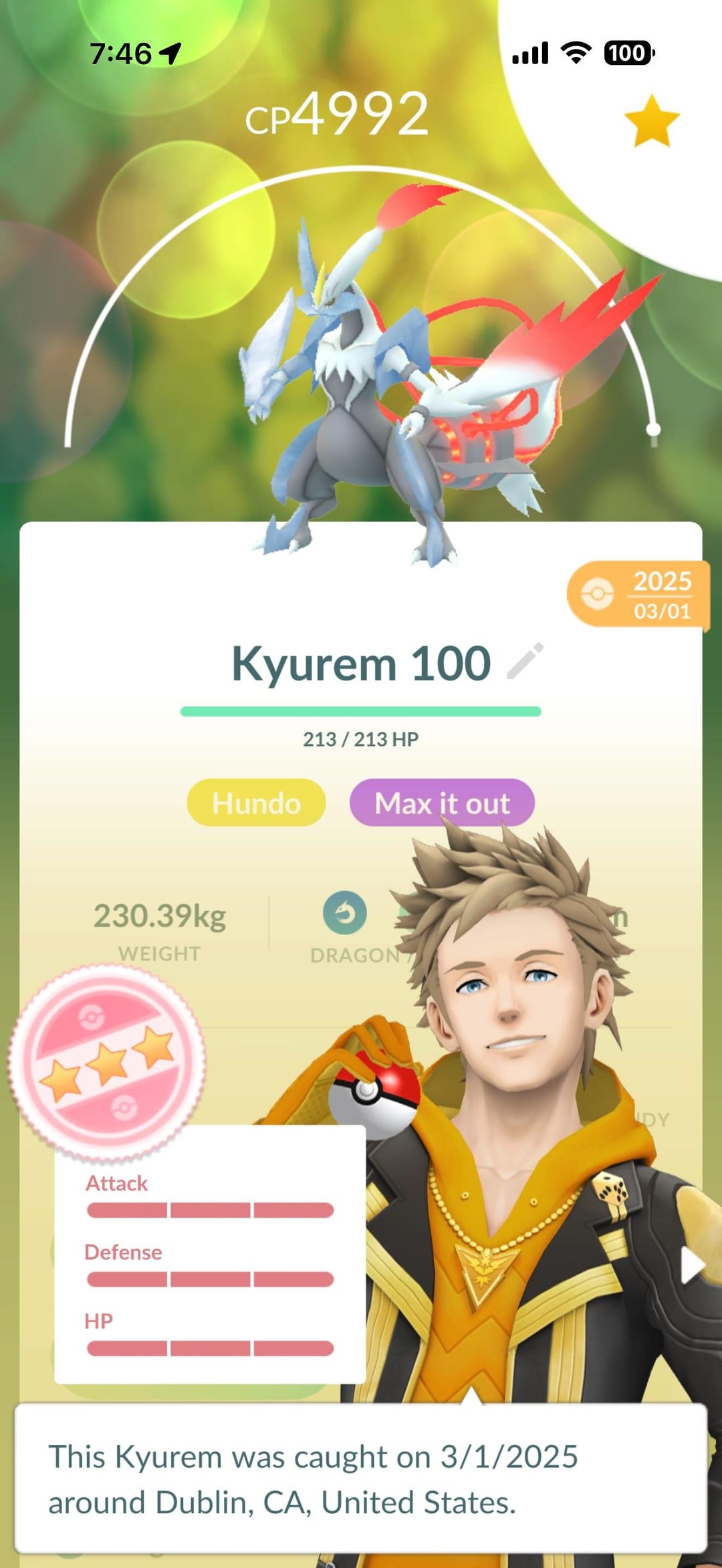 Still working for that Shundo… I’ve been playing the game for almost 6 years consistently and still haven’t got a Shundo other than bottle cap research. Got a few 3* shiny Kyurem but nothing close to perfect.