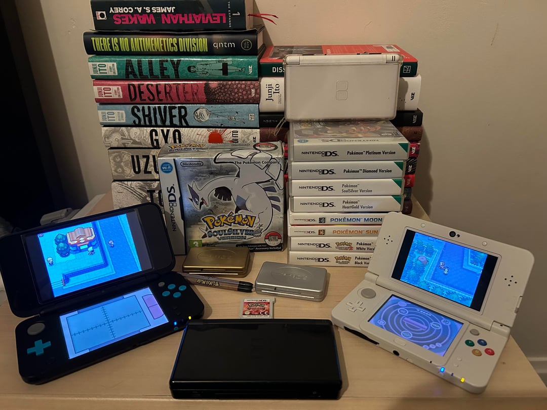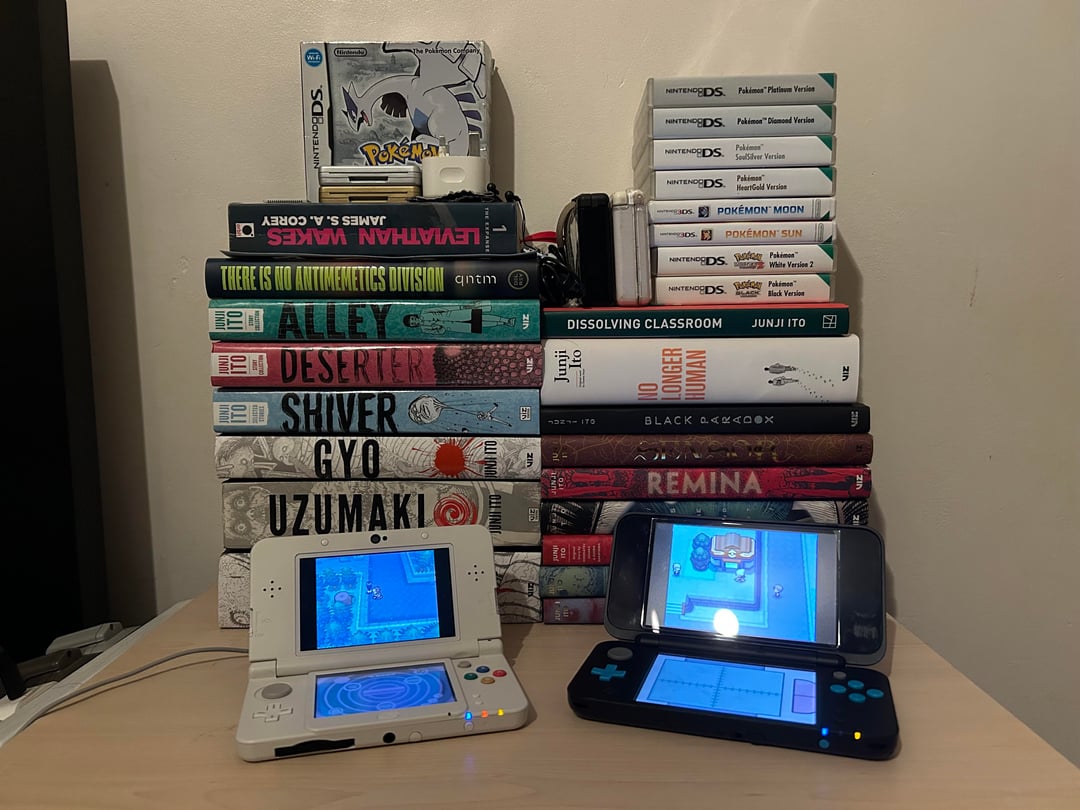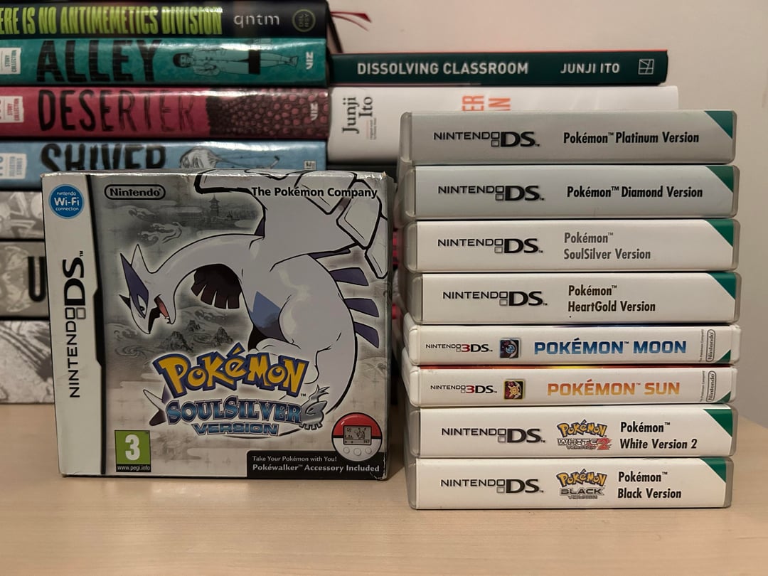 Bf had heart gold, diamond, sun, and black back in the day and I had platinum, diamond, emerald, and some mystery dungeon games when I was younger.