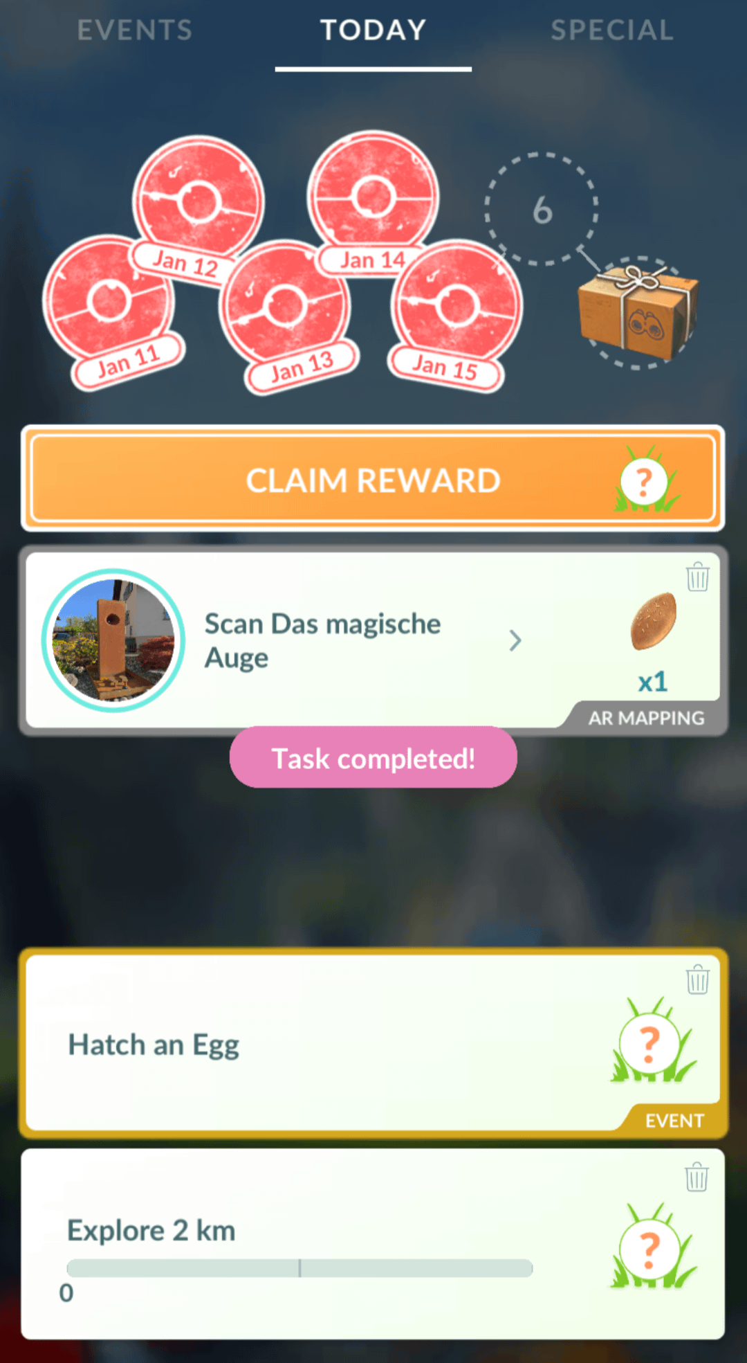 After leaving and re-entering the task menu, the same task re-appears with the completed coloring.