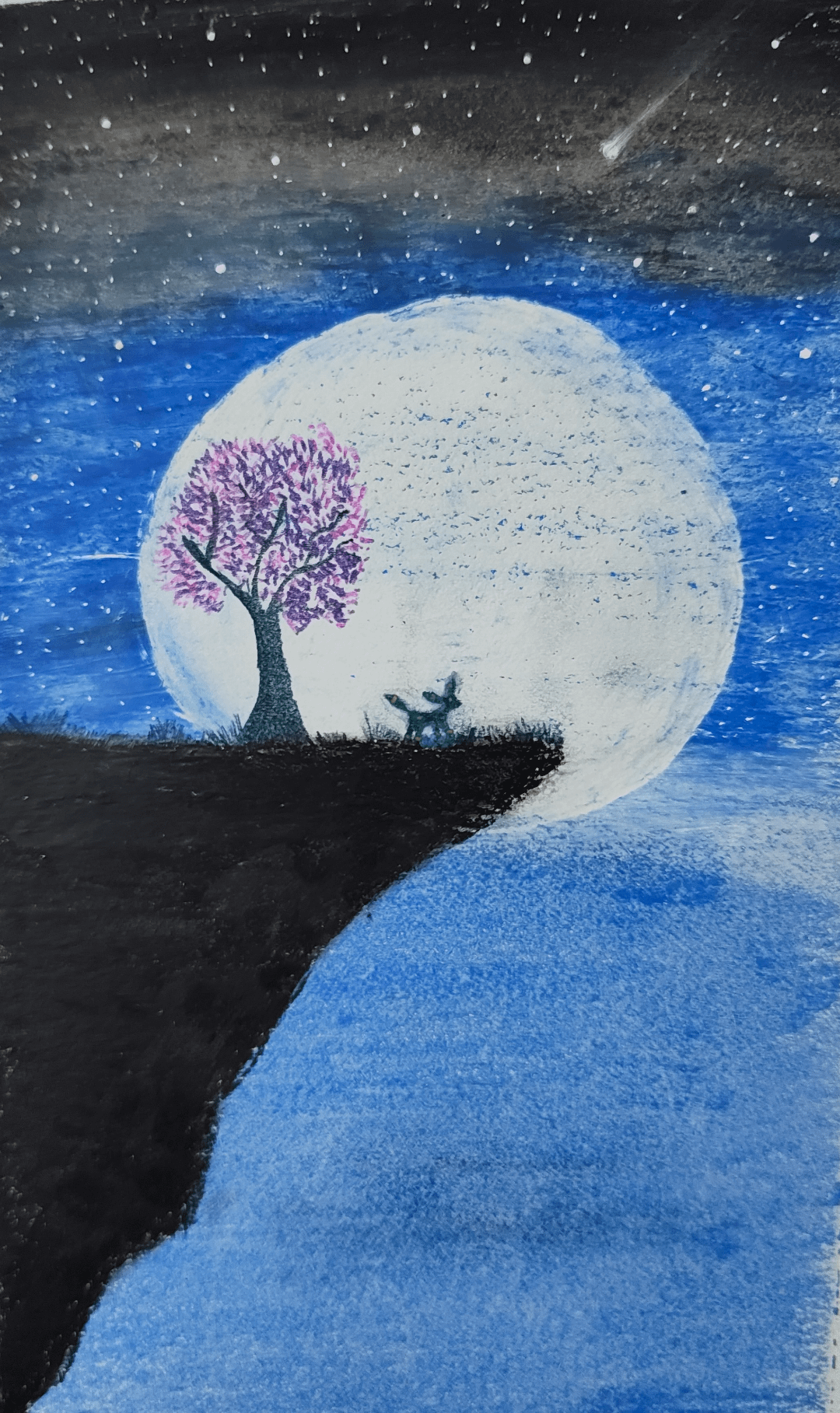 Noob attempt 🥲 : Umbreon in the moonlight | Oil pastels
