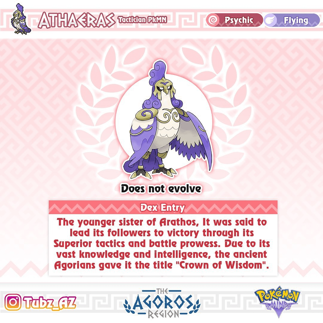 Meet Athaeras(Athena + Aero + -as (feminine suffix) ), the Tactician Pokémon and the box legendary of Pokémon Mind.
