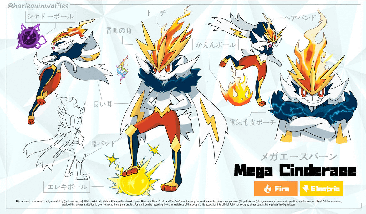 "Its determination made it able to combine fire and electricity to move at lightning speed and become the ultimate striker. The excess energy that bathes this Pokémon keeps it in constant danger of overflow. Anyone standing in it's path will receive countless shooting balls."