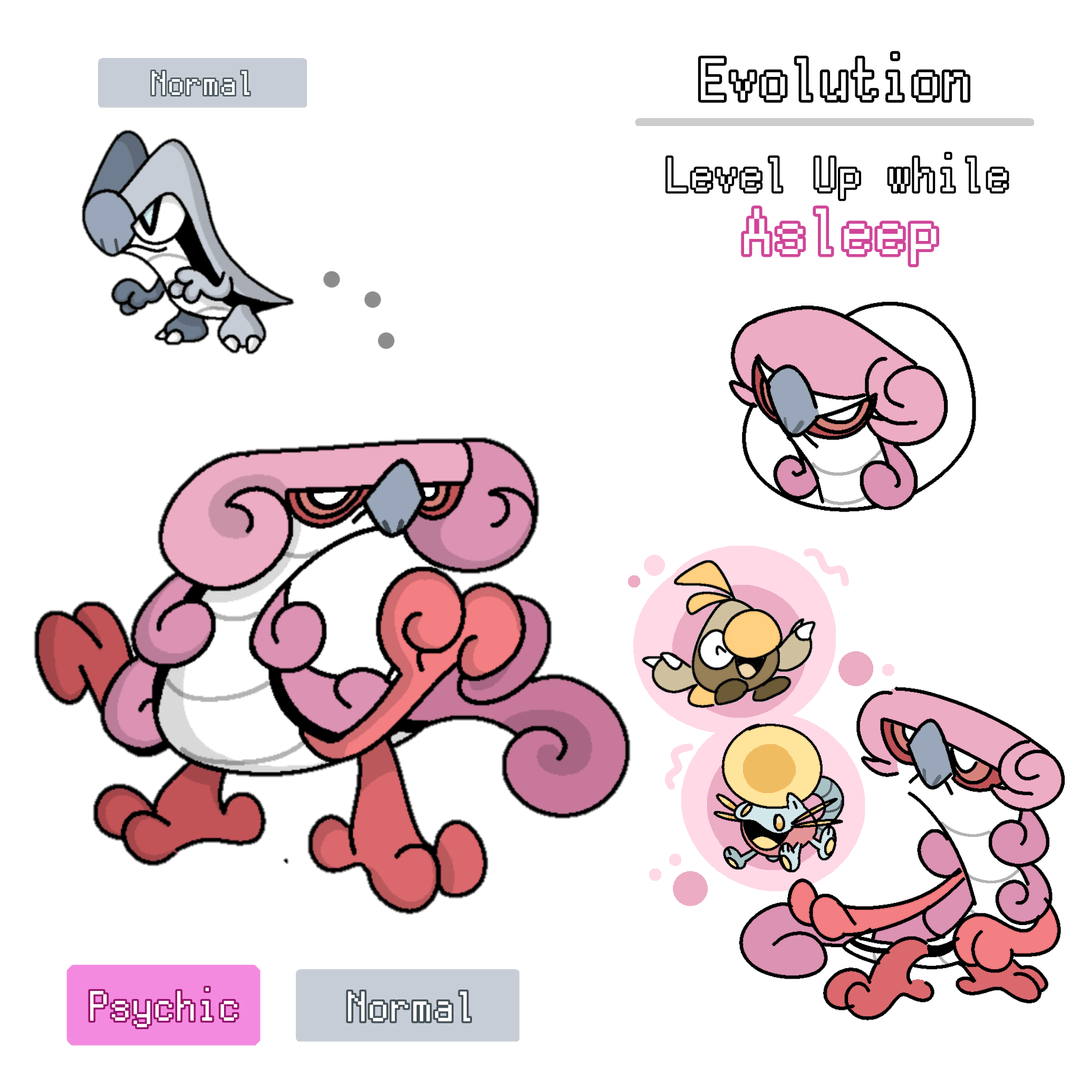 I would like to hear some feedback about these guys! I am not entirely sure if this kind of evolution method is possible (if it was to be real), but I still like all of them nonetheless! My favorite is the Psychic/Normal, I think it's pretty cool.
