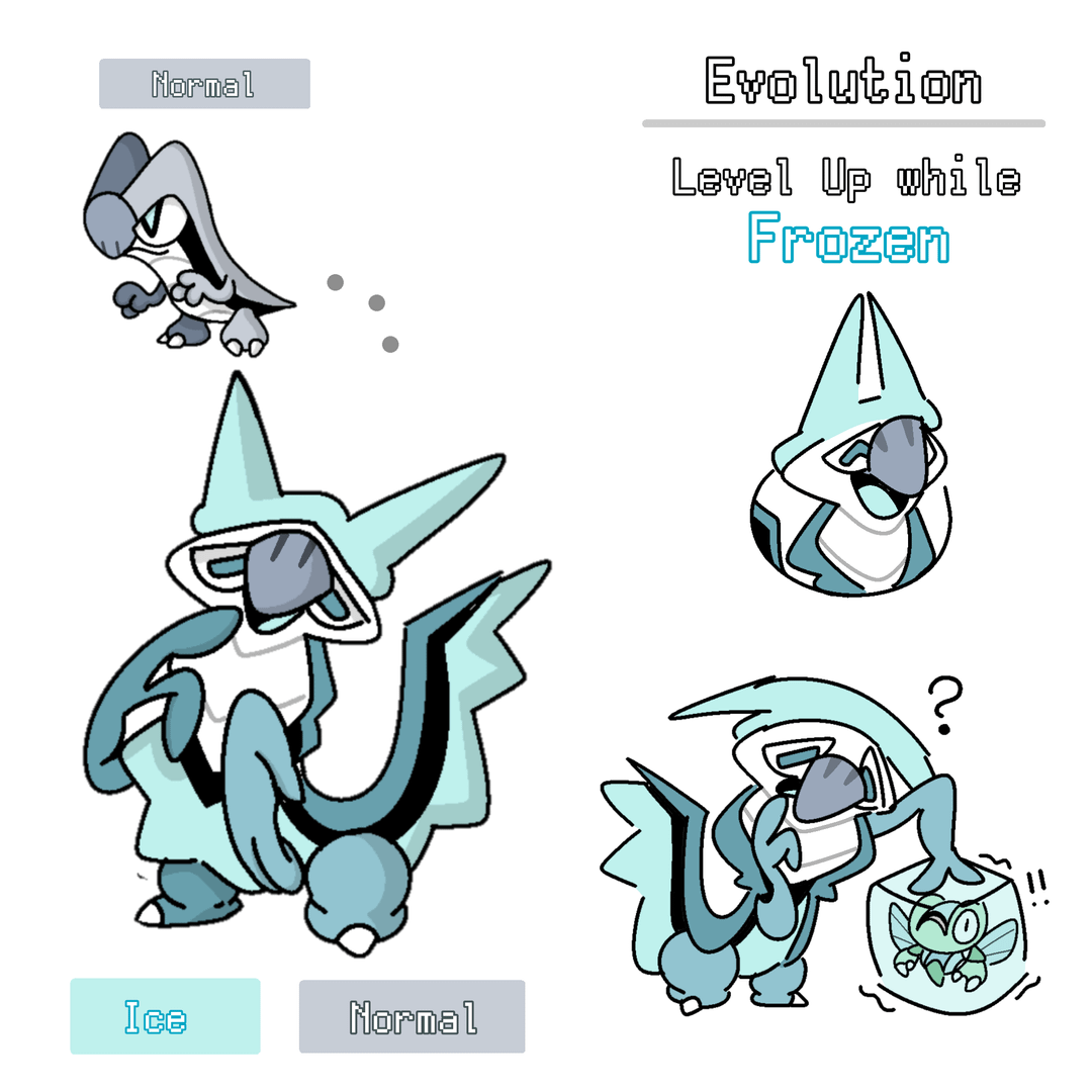 I made a few doodles of the evolutions, including their icons! I do not have any names for them, however.