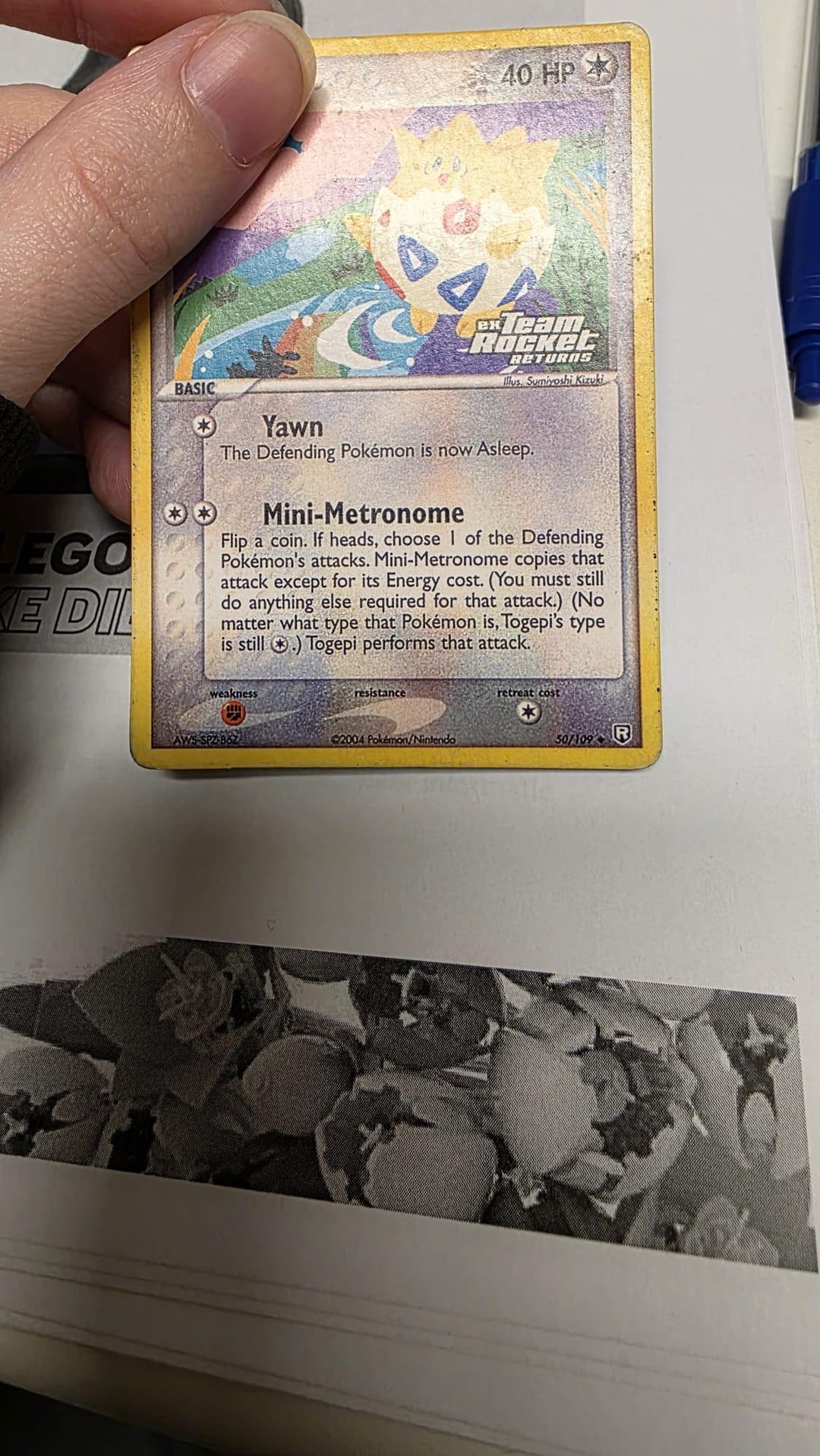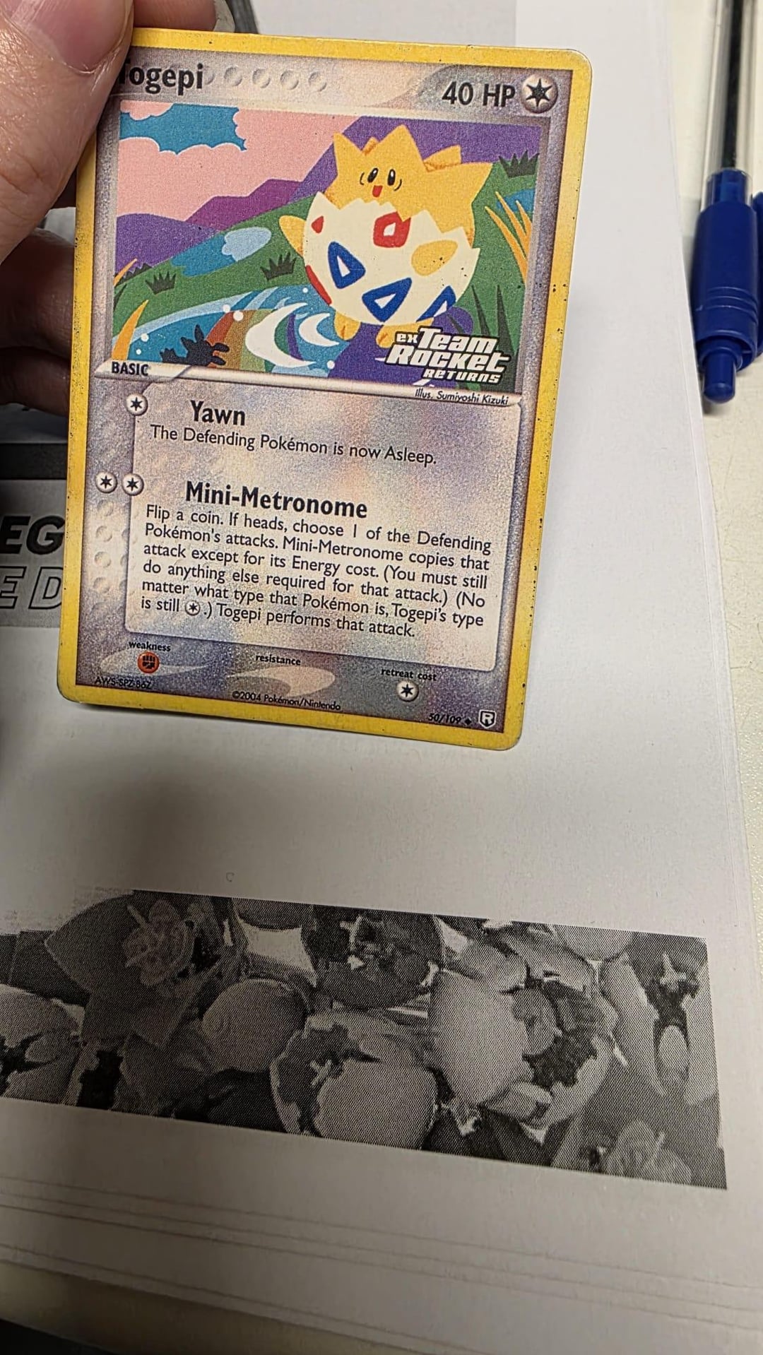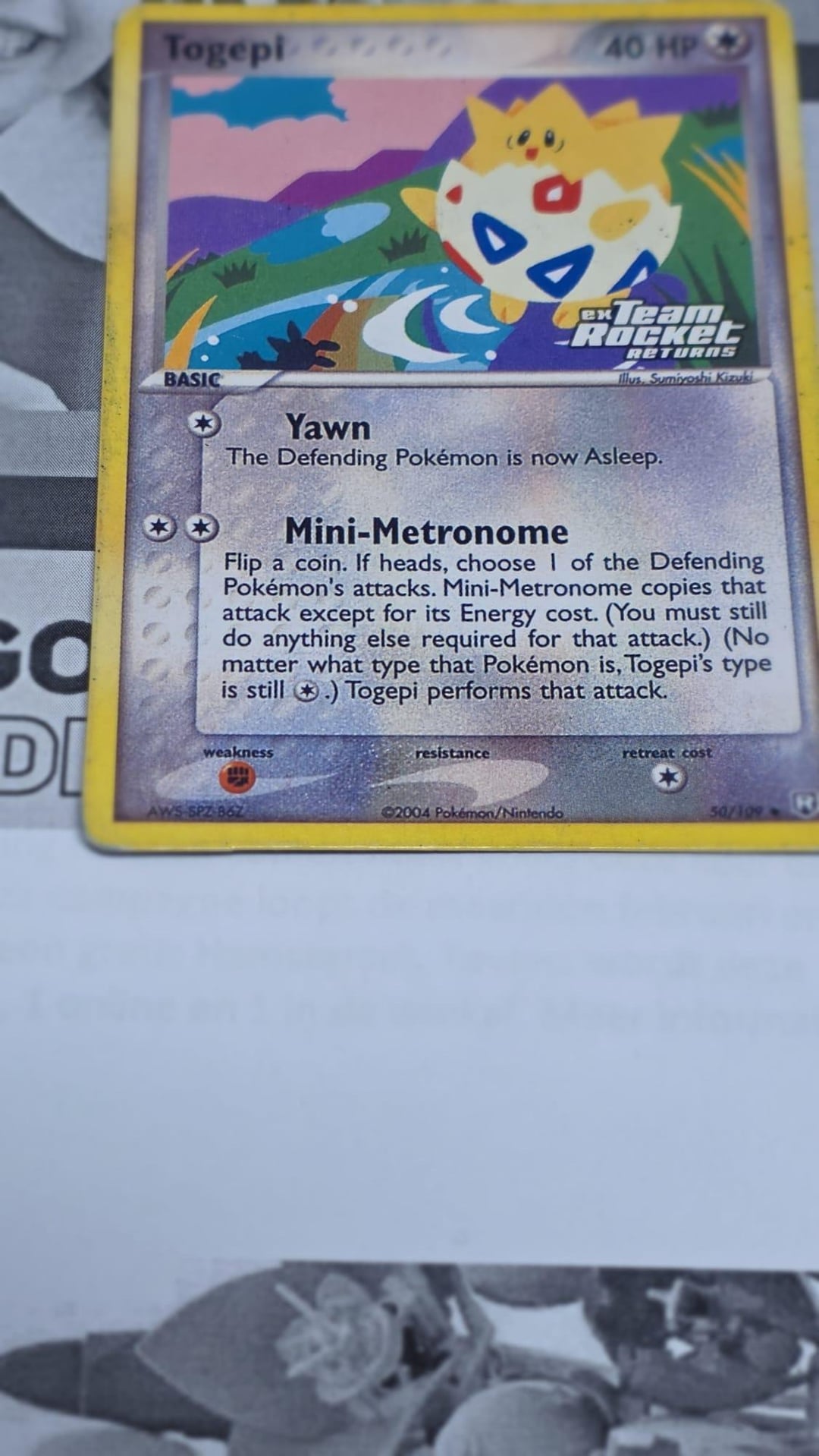 I bought a Togepi expansion stamped card from Team Rocket Returns. Upon arrival i noticed the card wasn’t holographic, but it did have the stamp. Also the quality of the print seems off.