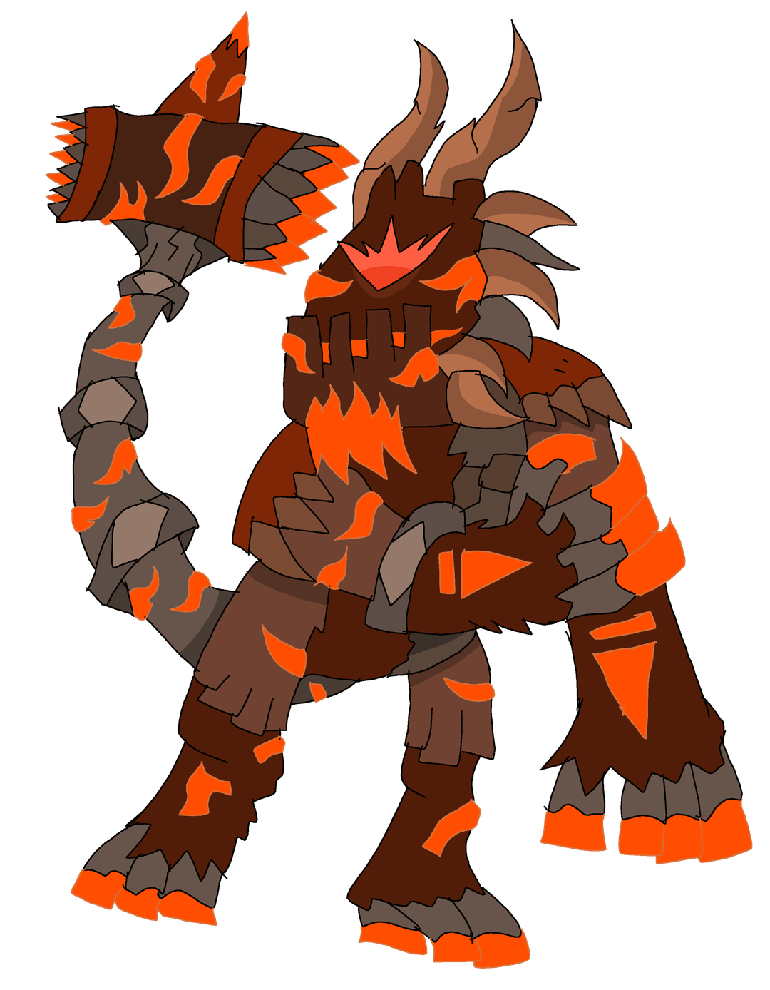 "Because of the hammer it carries, its tail alone has more muscles than most Pokemon have in their entire bodies. Its magma cracks can give serious burns to anyone who touches them."