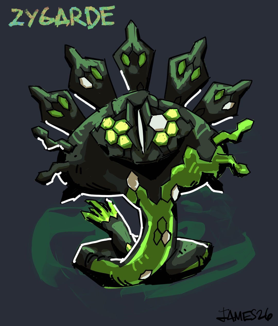 [OC] Pokemon fan art compilation, with my latest piece the Zygarde.