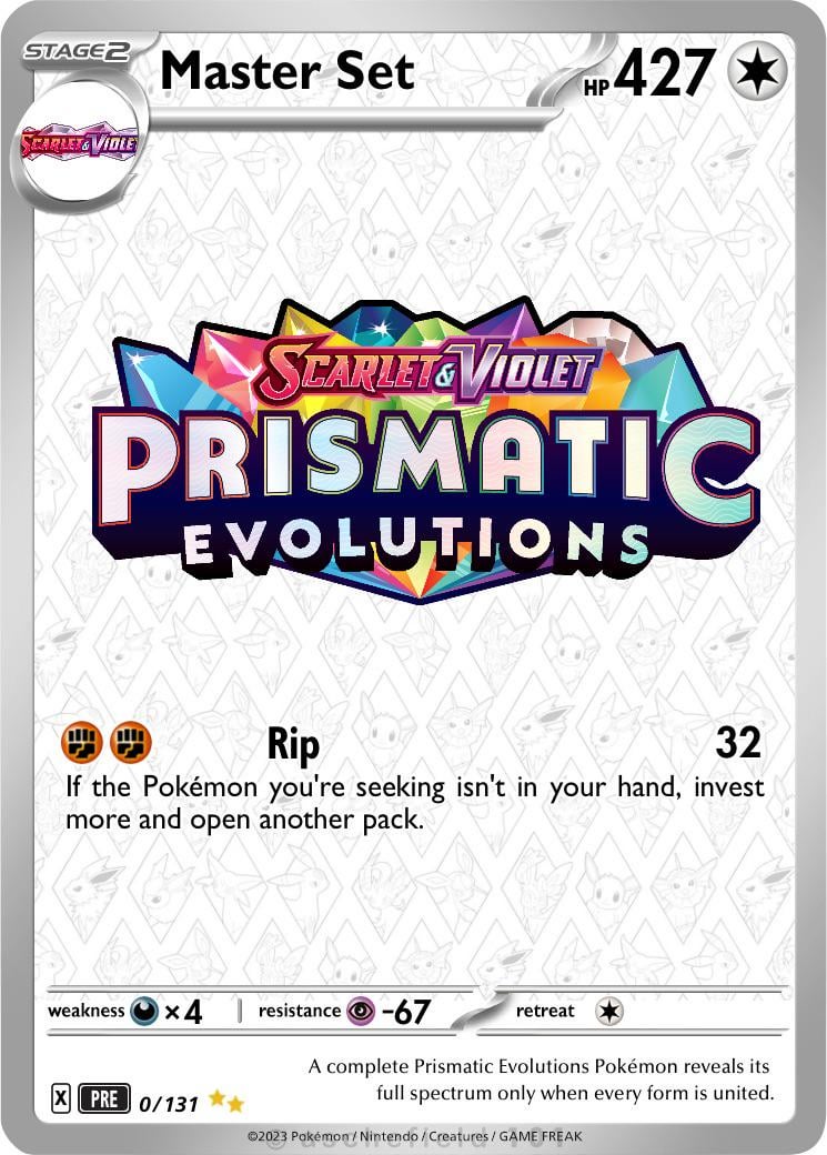 I've been working on a Master Set for Prismatic Evolutions, currently working through the Master Ball variants and SIR's.