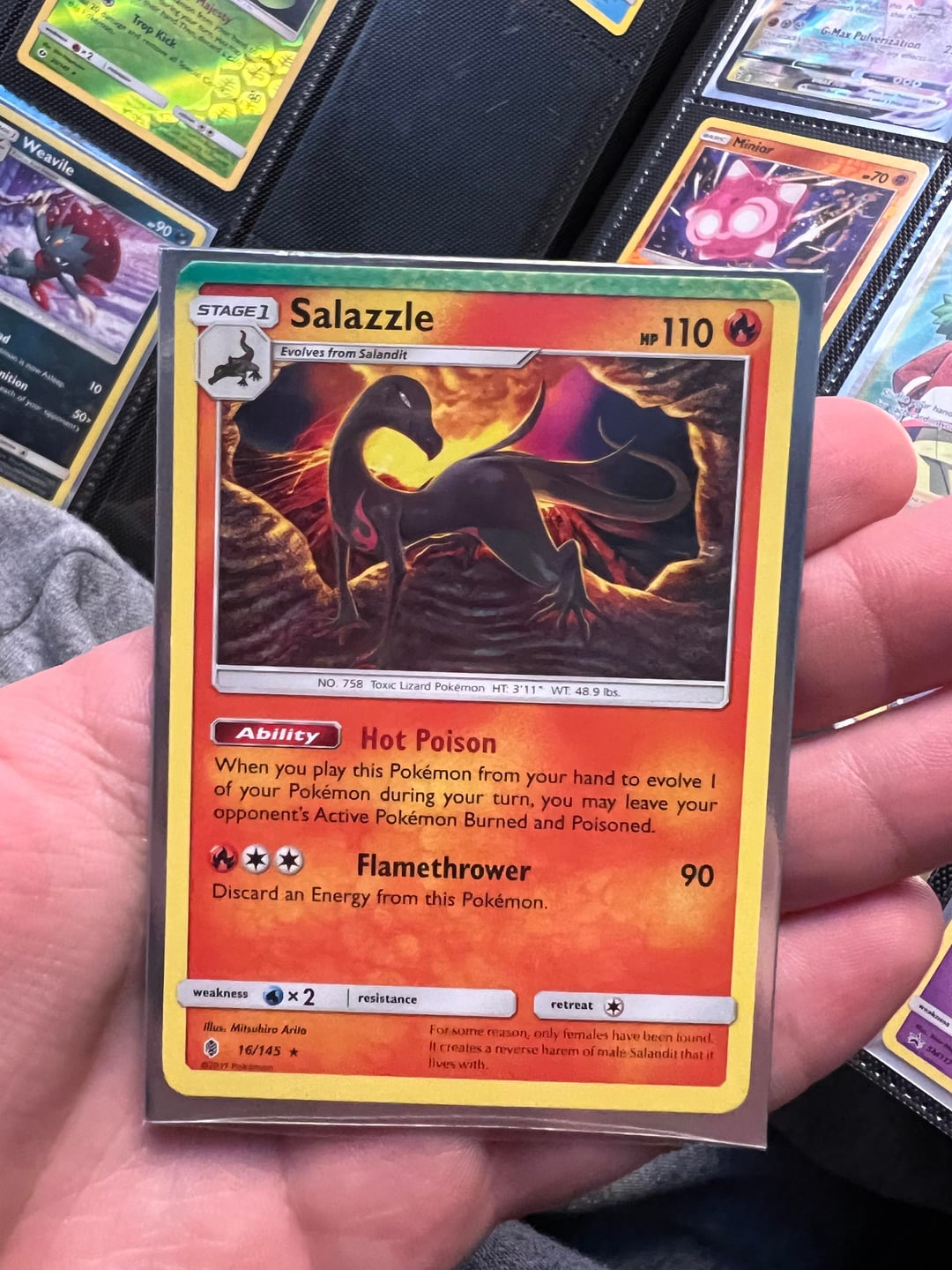 So i’ve got these two cards and they’re nothing special, but I’ve always noticed that green on the top especially on the Salazzle, and it’s very clearly a misprint, but I’ve never really seen any like this before. Has anyone else? by ProWiper06 Write A CommentYou must be logged in to post a comment.
