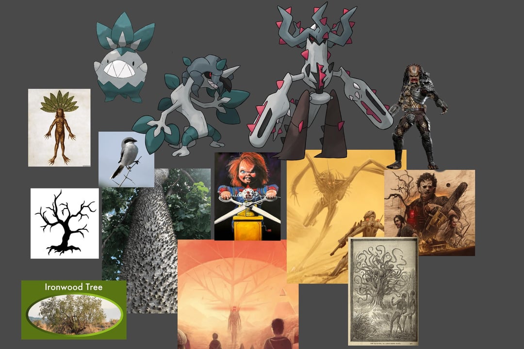The entire line idea is that they are hyper carnivorous alloy with plant like qualities. And a play on the term “Ironwood.” It’s designed to be a pseudo legendary Pokemon.
