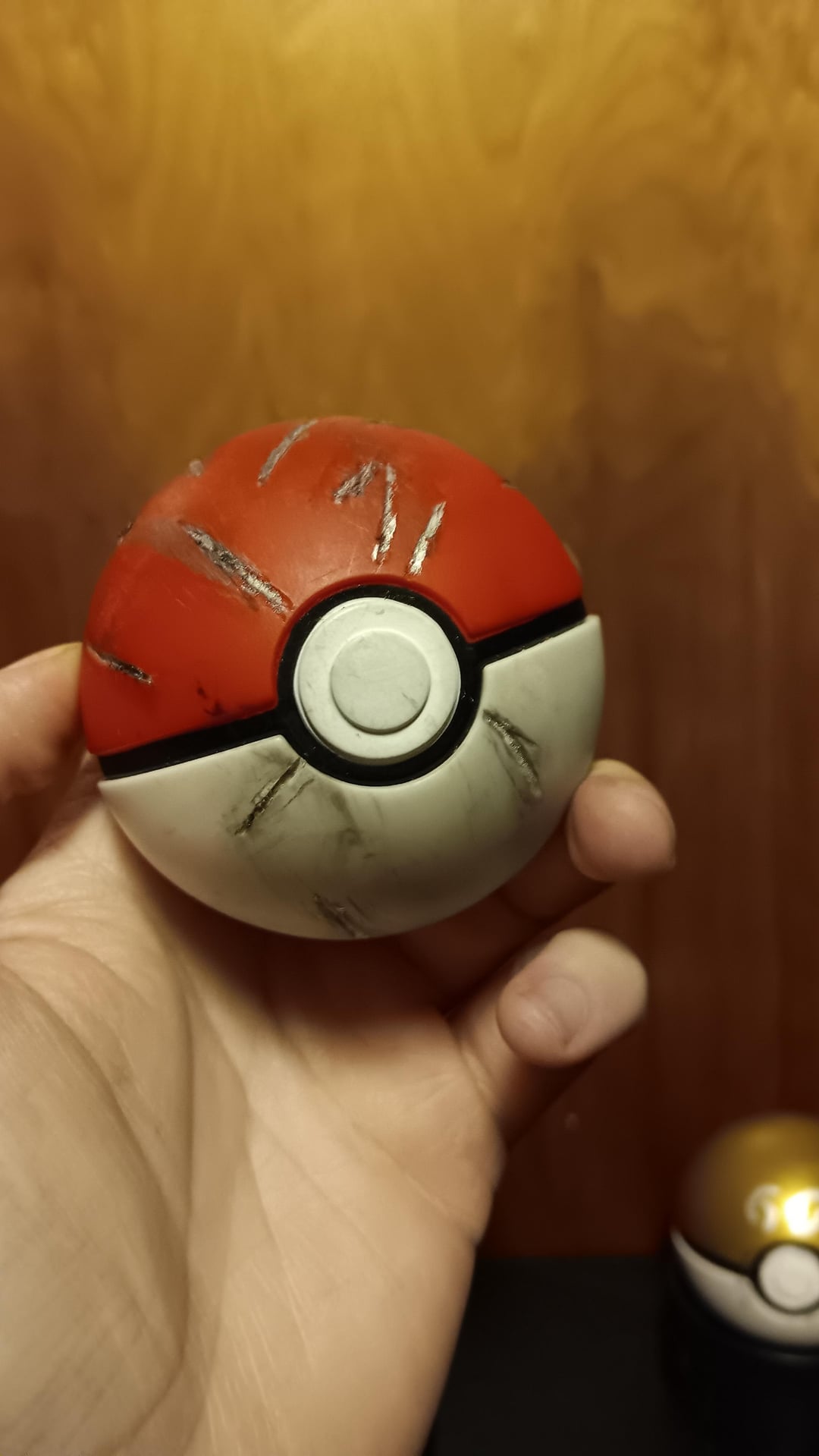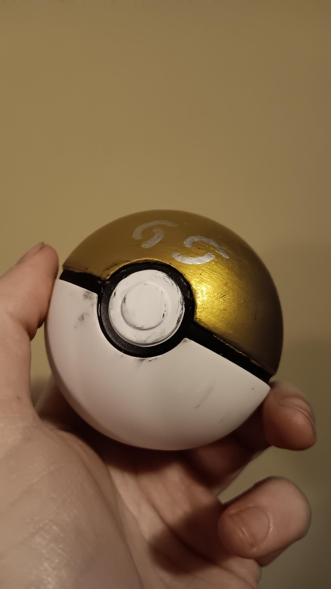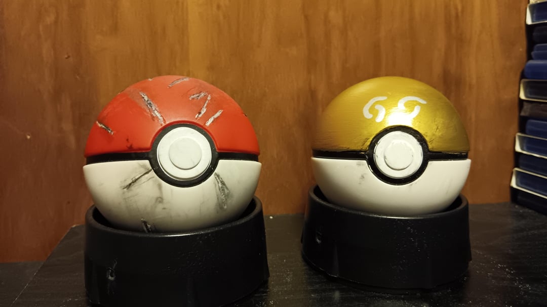 I got these Pokeball ornament during Christmas and these are fully plastic and nicely detailed, so I decided to do some custom work on them. Using my dreame to cut and sanded the plastic hoop on the top, than begin cutting up marking the on ball where I think it would get damaged. Using sliver and black paint to suff up the marking and a wet wipe around to make it a bit dirty. The Gs was quite simple as I just did a 2 black coat as a base layer before adding multiple coal of gold paint, than using a sliver paint pen to add Gs (I kinda wish I could've done better)