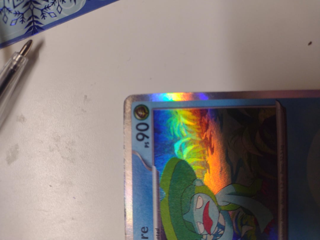 So, my younger brother bought himself Pokémon Destined Rivals pack of cards in Spain. They all are holographic and seem legit, until my brother noticed his new Lombre card. It has water element background and everything, but element in top right corner (sorry, I'm no expert in Pokémon cards) has grass element icon. Does anyone have an idea why it might be?