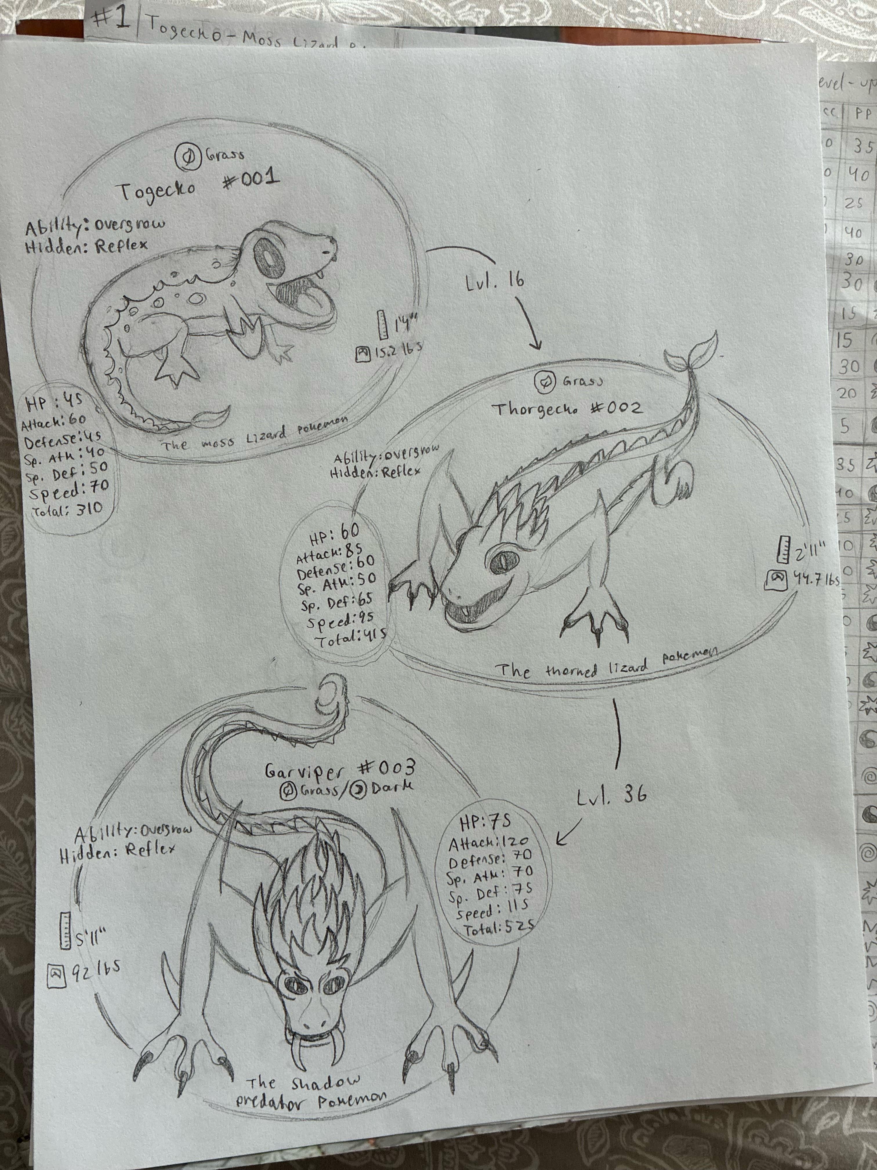 Togecko is based on the Tokay Gecko, Thorgecko keeps the aesthetic, but adds elements of a bearded dragon disguised as thorns, and Garvipebis based off of a mix of a Gargoyle Gecko and a Viper