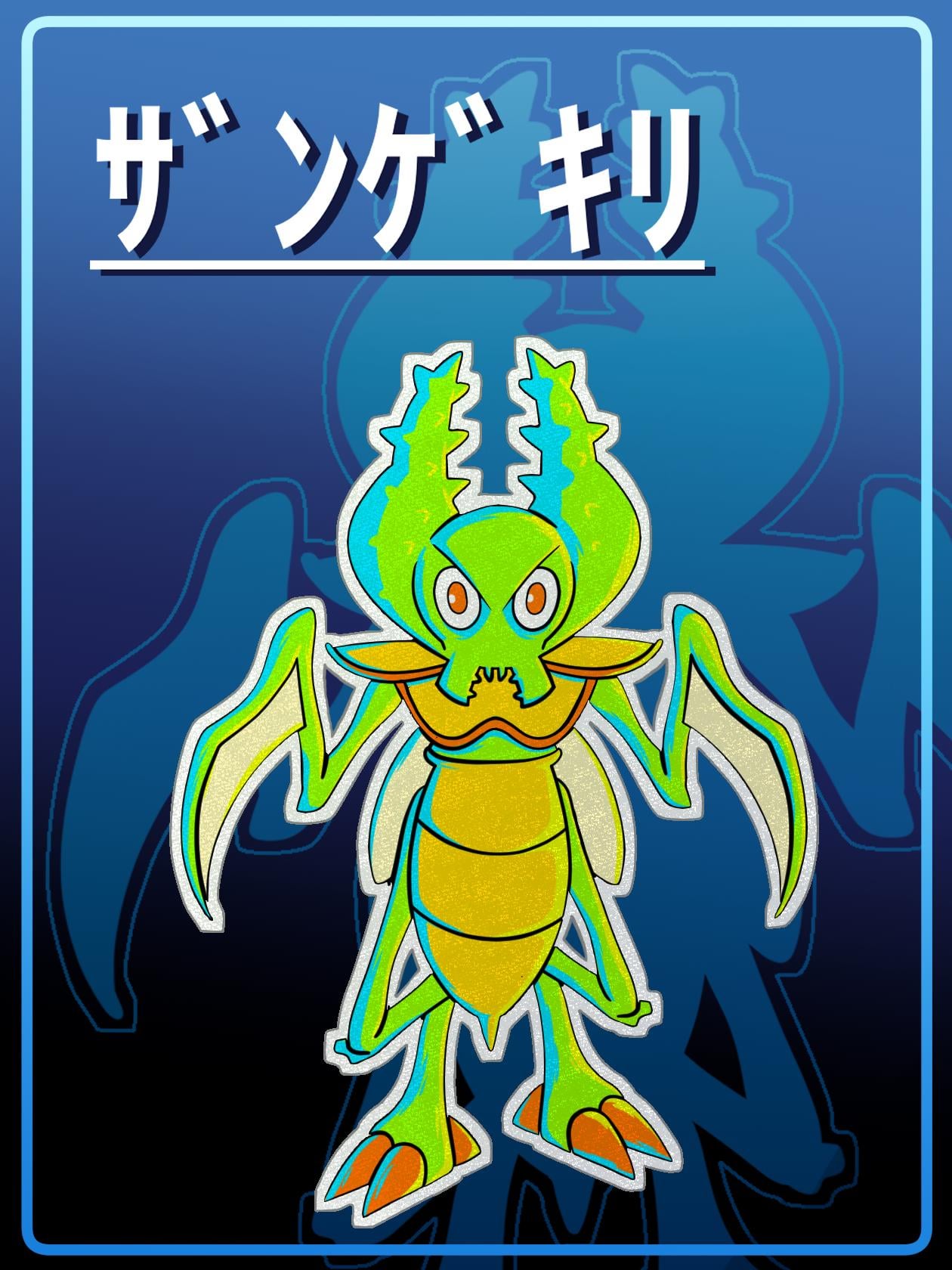 The name is a blend of the Japanese terms Zangeki (Slashing Strike) and Kamakiri (Mantis).