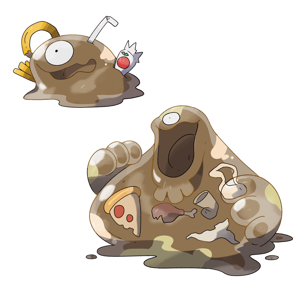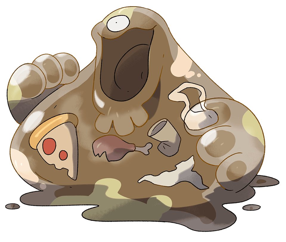 These guys were born similarly to the muk and garbodor lines, they started out as Old frying frying oils used by a restaurant chain in the erifin region. The owner of the chain was a notoriously Stingy man, And he insisted that the oil will be reused as many times as possible. Once that came to light (As well as several other health code violations), Every restaurant in the chain was forced to shut down. All the oil was poured into barrels, Or even just left in the fryers, And left there to rock. Over the years, The buildings became warm, wet, and muggy, Which began to mutate the bacteria in the oil, Causing it to gain sentience. Now they can be Found all throughout the major cities and towns of erifin, especially in alleyway or behind fast food restaurants.