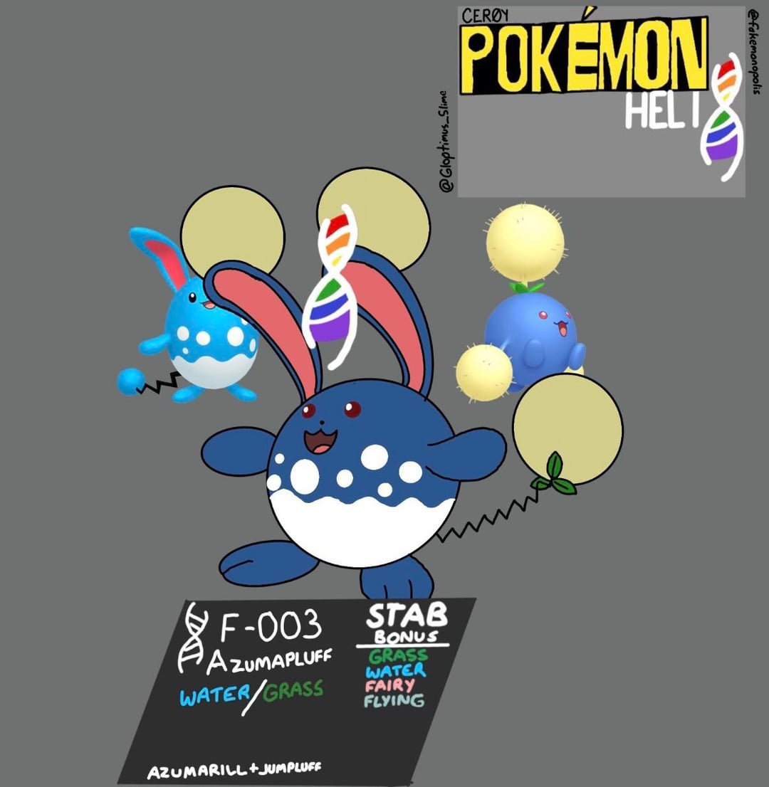 [OC] Azumapluff(Azumarill + Jumpluff fusion)