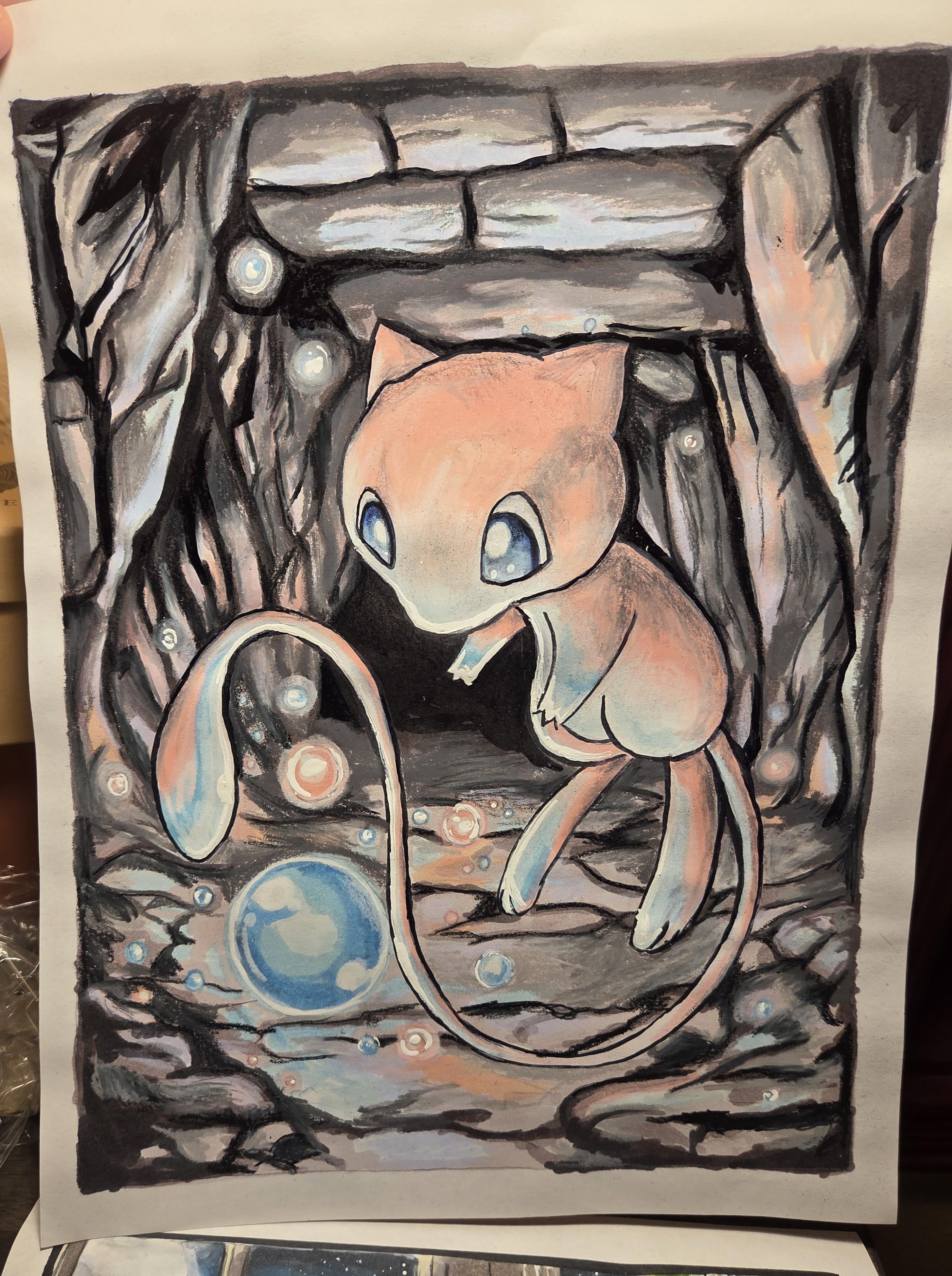 [OC] “Bubble Mew” and its mysterious lights. Done with Copic Markers and Colored Pencils.