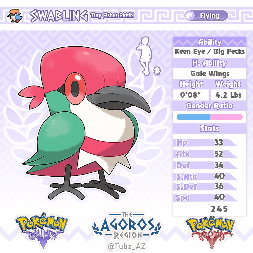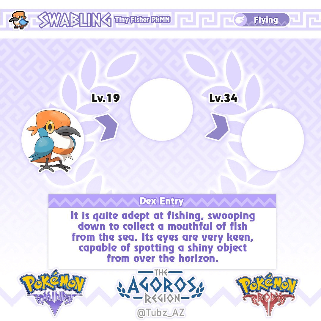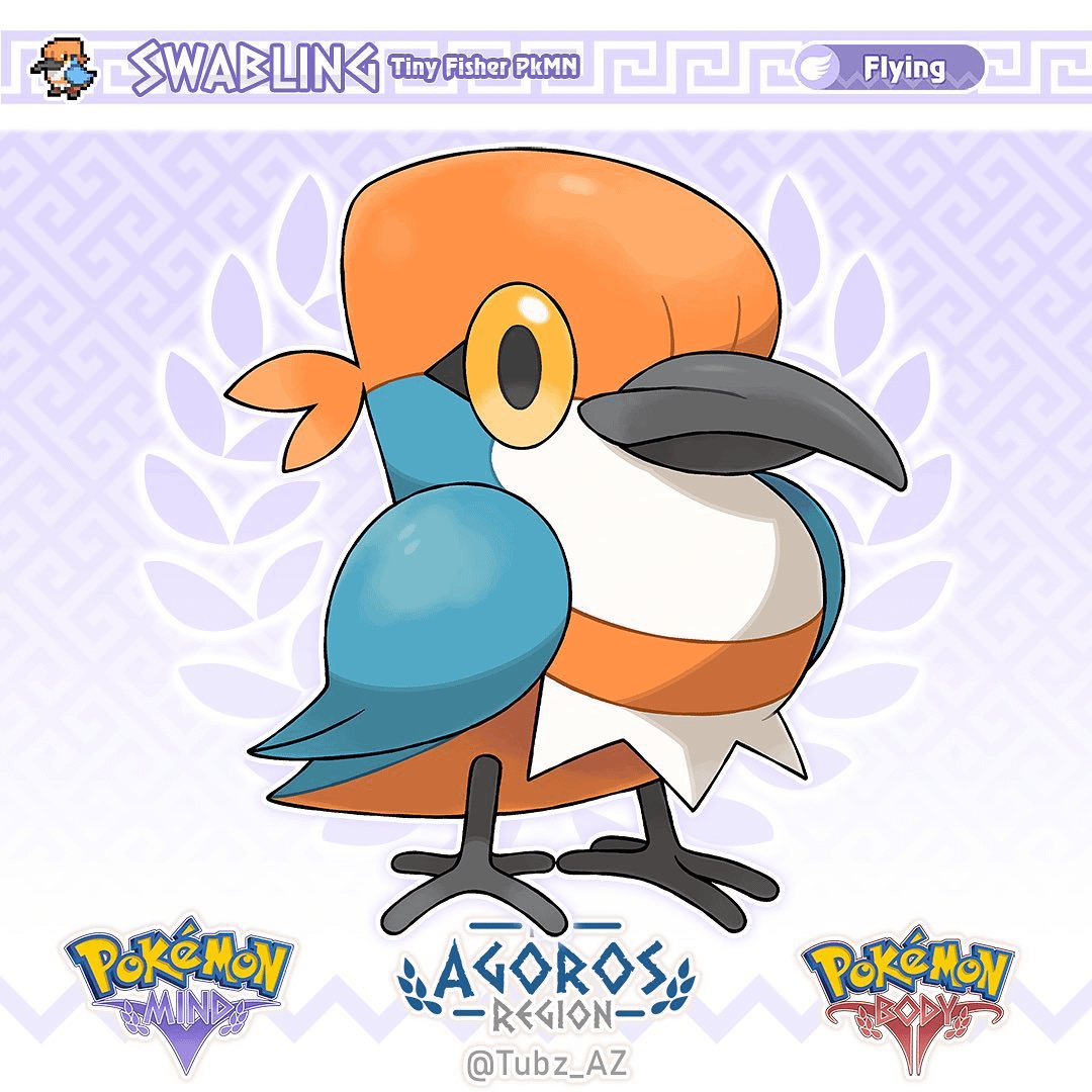 Meet Swabling(Swab + Hatchling), the Tiny Fisher Pokémon and Agoros’ early game bird!