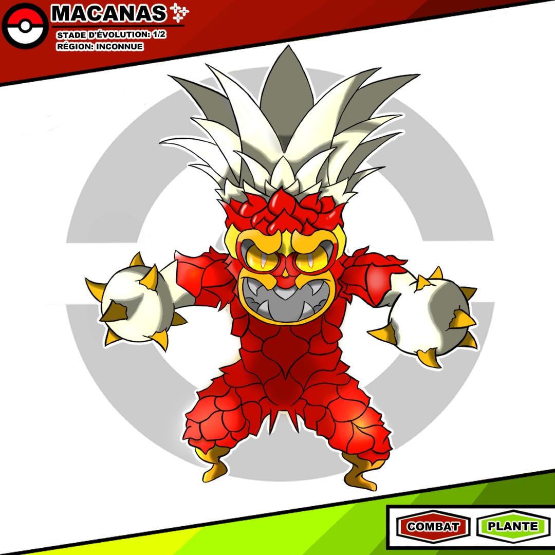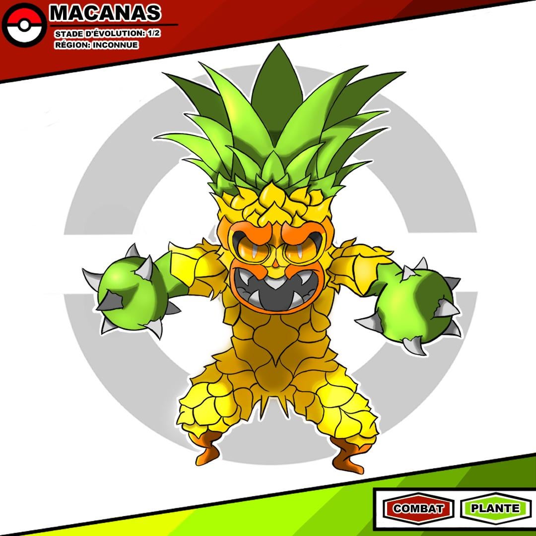 Today, I present Macanas, a Primate Pokémon with the appearance of a large pineapple.