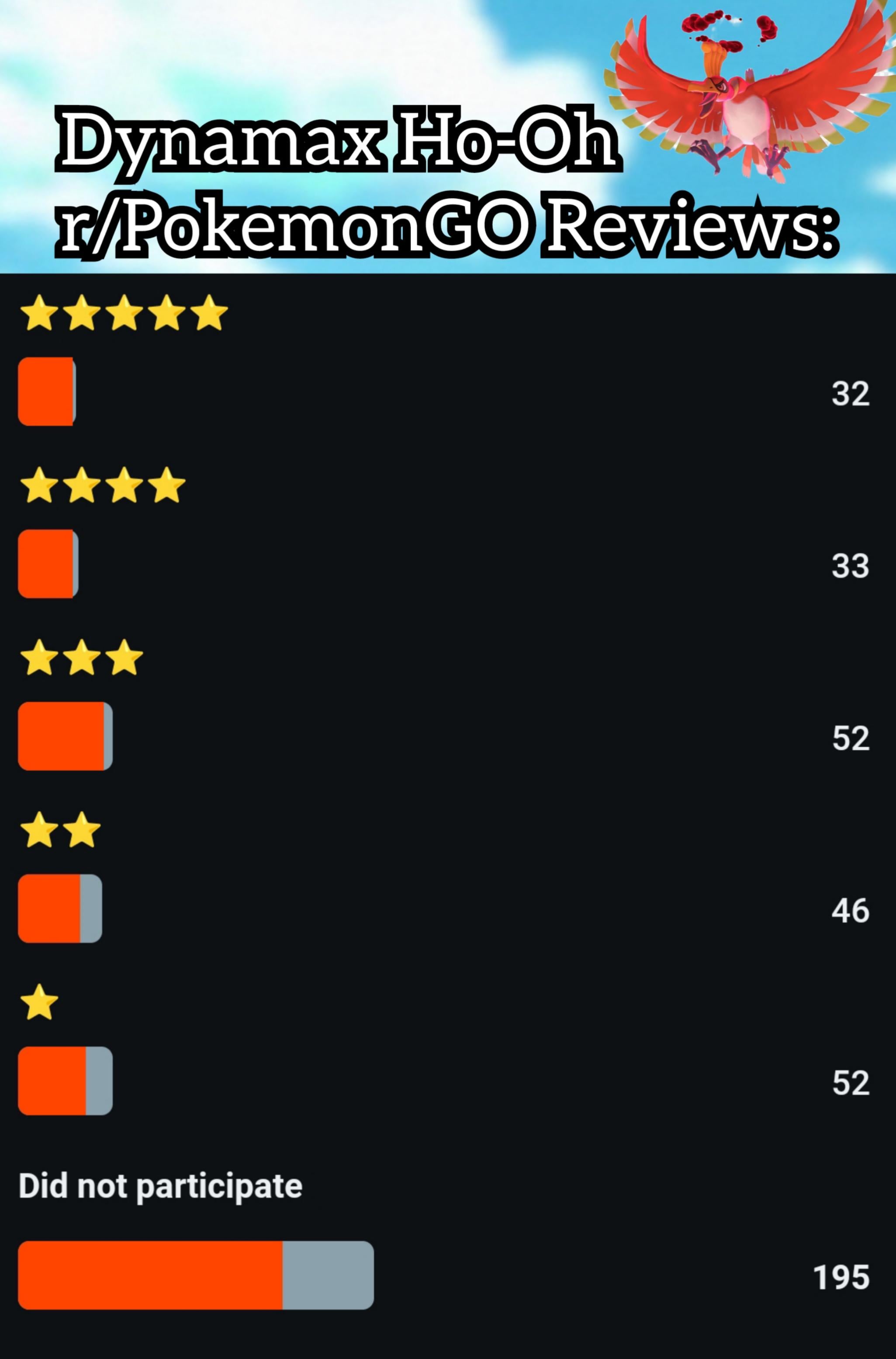 This is how this subreddit rated the Dynamax Ho-Oh event (I created a poll on Sunday) by Entire_Pineapple4732 Write A CommentYou must be logged in to post a comment.