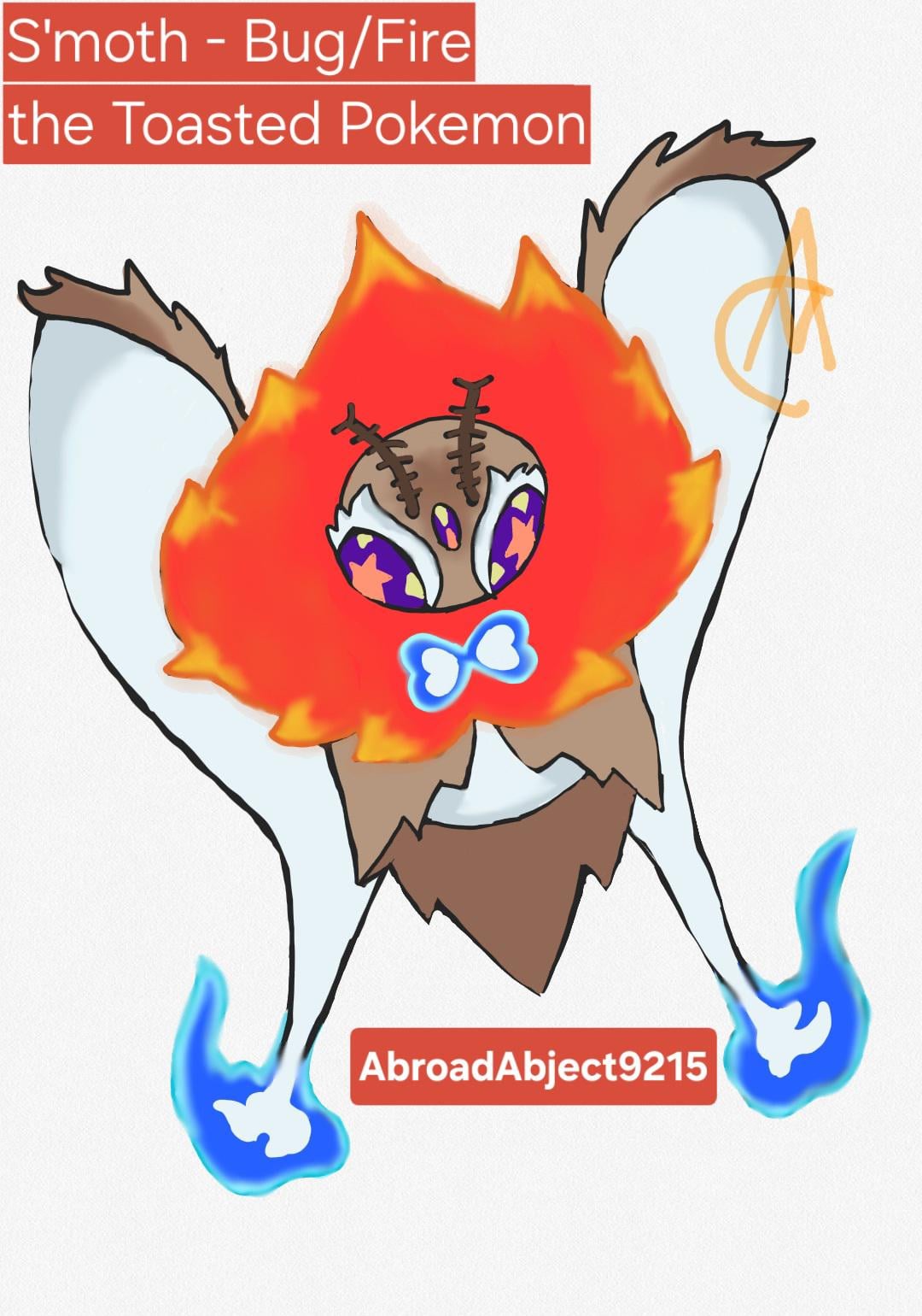 I had this idea for a fakemon after discussing the idea with others; a toasty little moth! I took some liberties with the design, and was inspired by roasted marshmallows! Some pokedex entries: