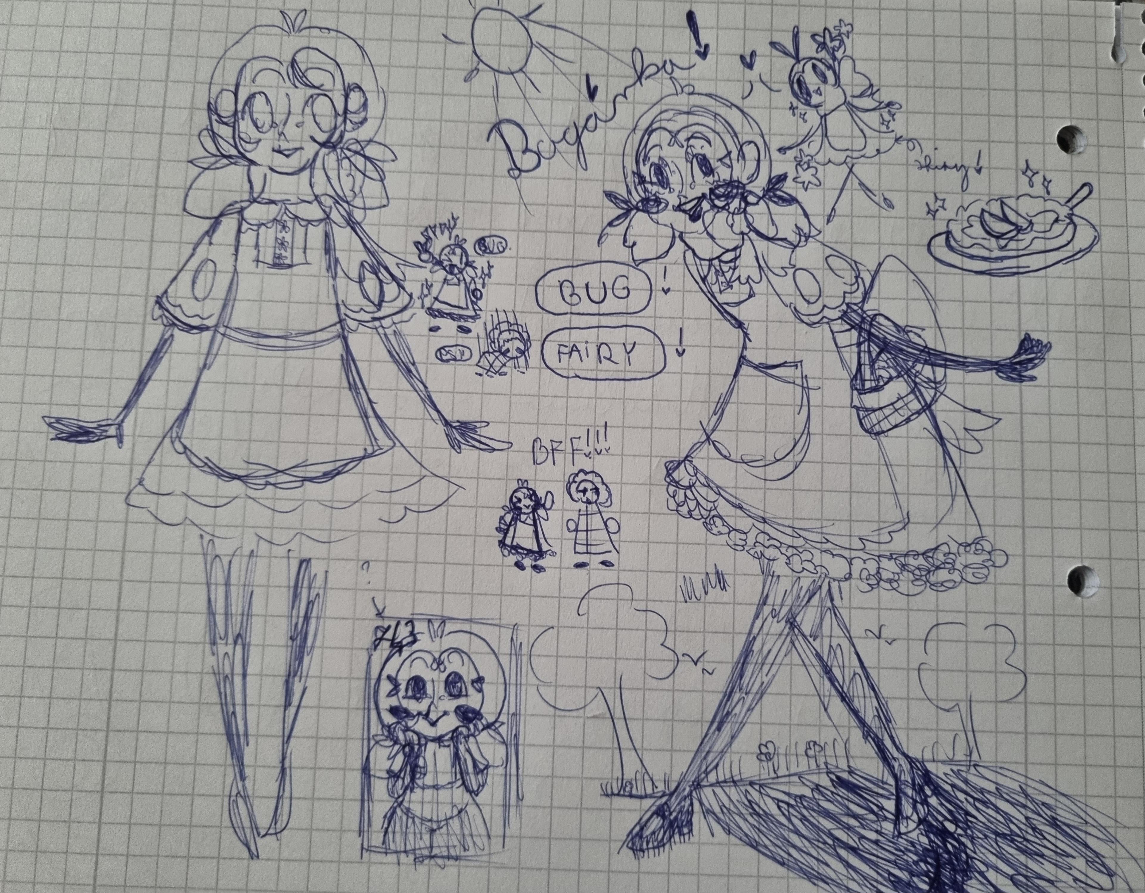 I originally wanted to make her a bug fairy specialist until i realised Ribombee is the only bug fairy type so i guess it's just fairy specialist who likes bugs now.