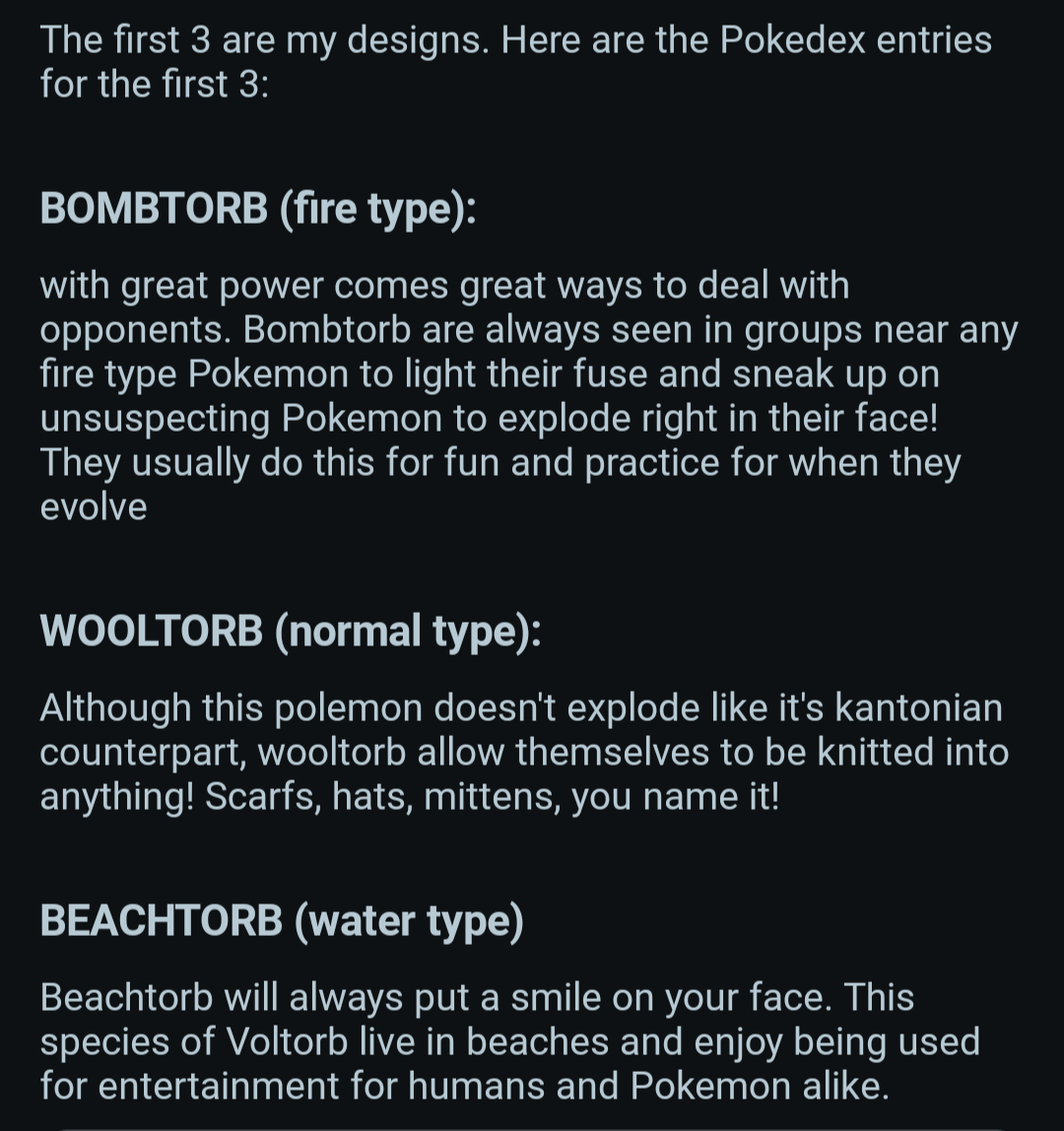 I’m drawing a Voltorb of every type (electric and grass not included) [POKEDEX ENTRIES are THE 4TH IMAGE] by DueBreak3595 Write A CommentYou must be logged in to post a comment.