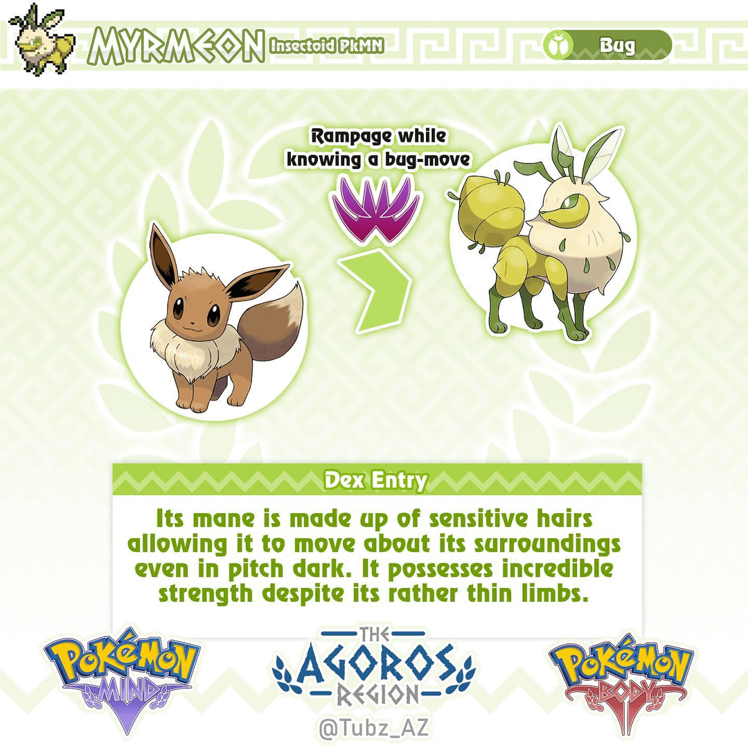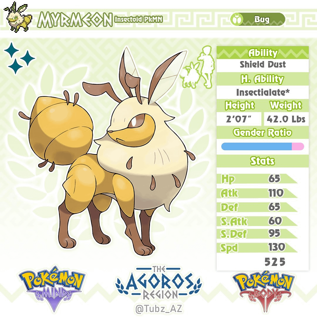 Meet Myrmeon(Myrmecoleon + eon), the insectoid Pokémon and the eeveelution of Agoros!