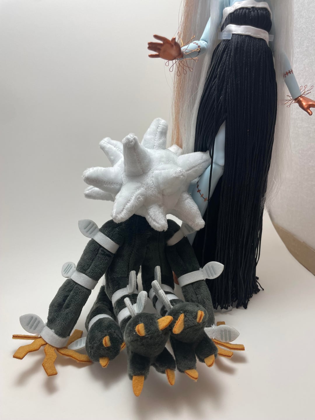 The doll is a monster high doll, their name is Frankie, I chose that one bc they’re frankenstein inspired (but a but to the left obviously) and they have electricity powers like xurkitree.