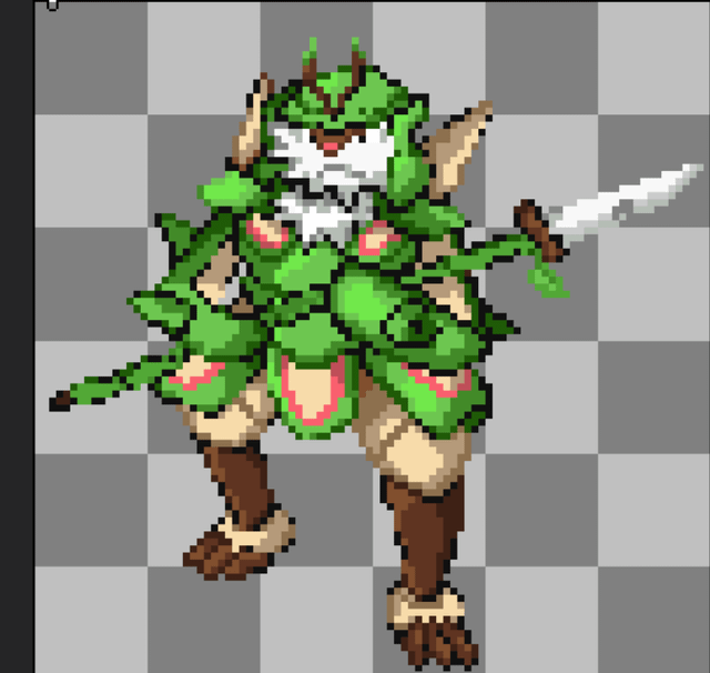 On the other hand, there is Chesnaught, who is now a samurai highly inspired by a hatamoto. He has a naginata as his main weapon. Although it is not the best sprite (I will do better), I like the concept of another type of warrior in Chesnaught.