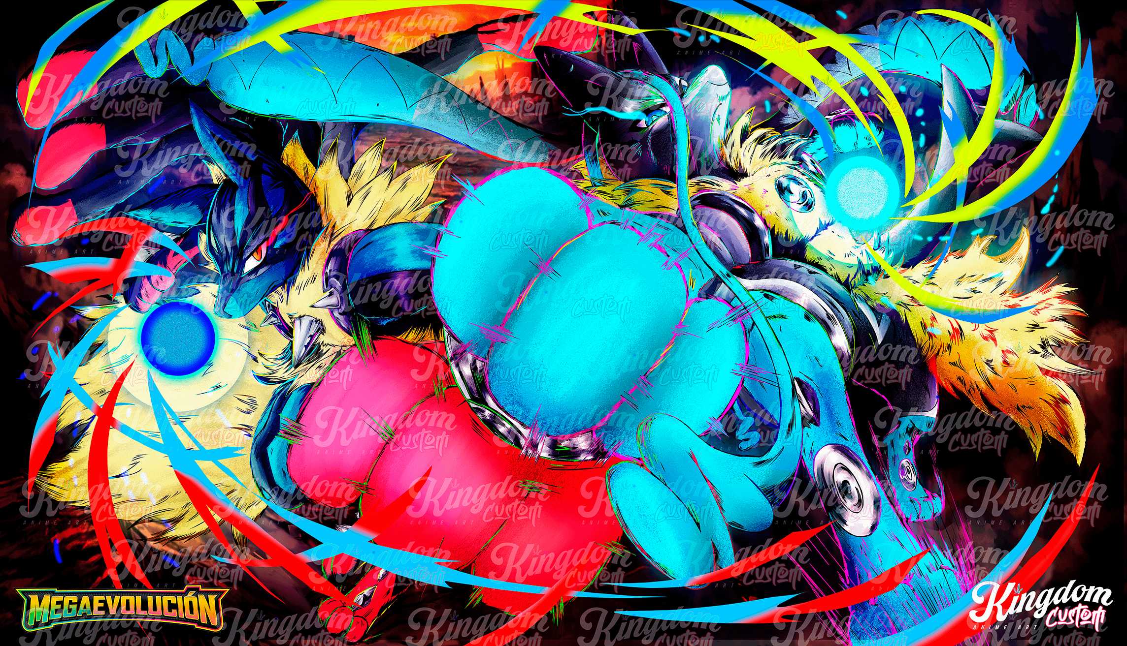 Ilustracion inspirada en las cartas TCG de Pokemon y la aparicion de Mega Lucario Z en el juego de Nintendo Switch. Espero les guste [OC]