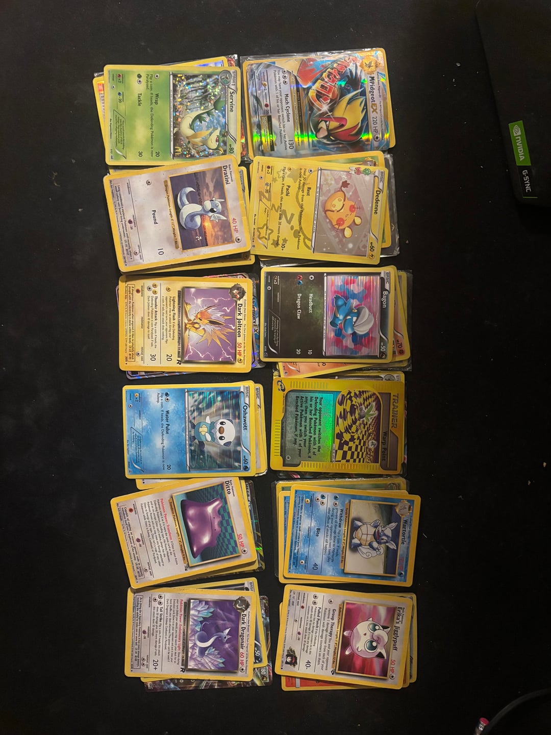 I went through my old Pokemon bin from when I was a kid and looking to sell. I attached pictures of the more valuable cards of the ones I went through but I couldn’t make it through all of them. I have no clue what this is worth so send me any offers, or any questions you have, feel free. Most cards in good/decent condition. Estimated 150-250 cards in the bin.