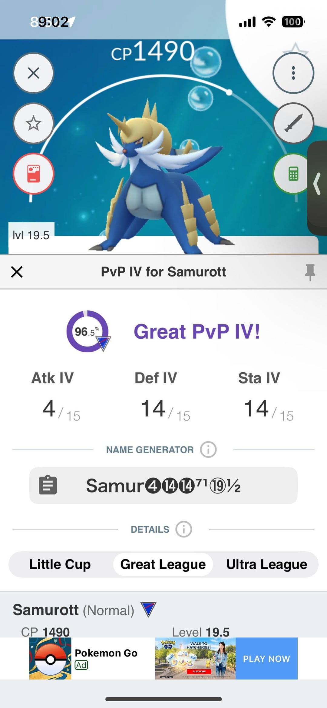 Great League PvP Samurott