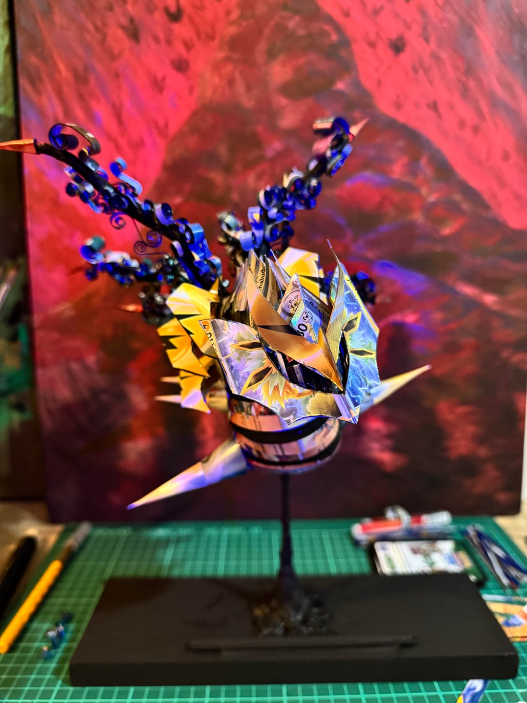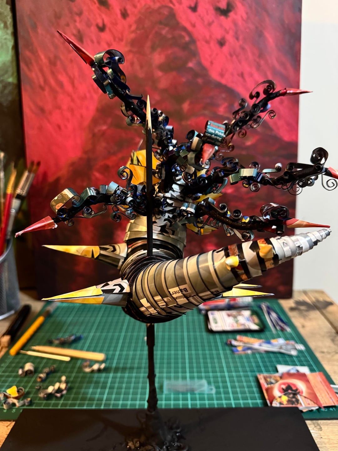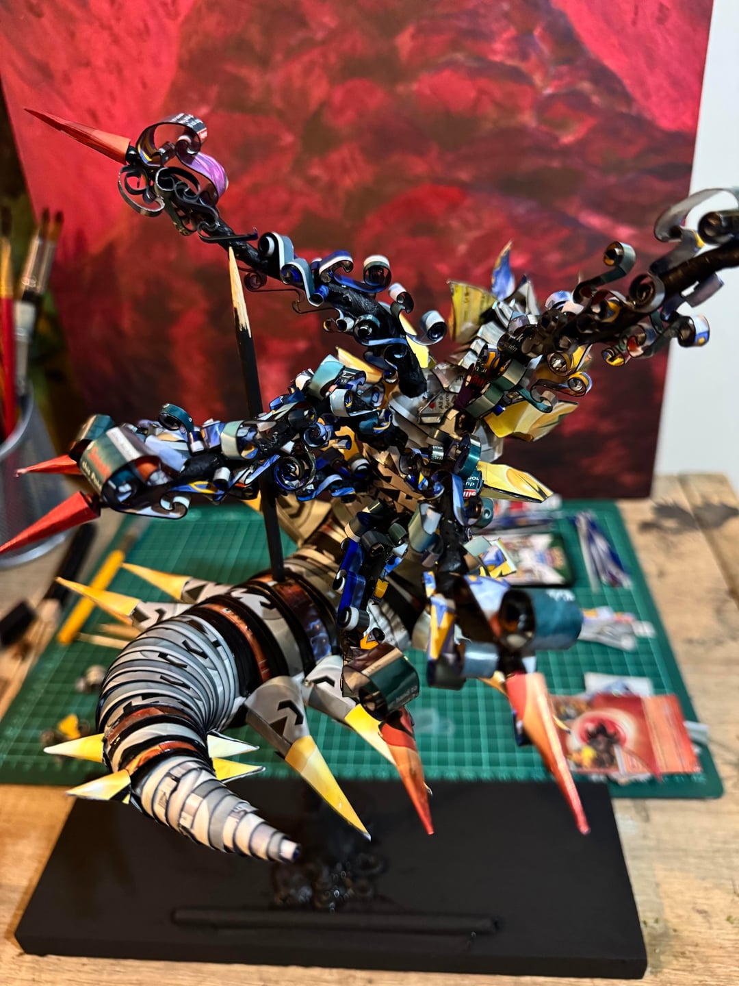 I’m uploading more pics of the sculpture before weekend, the body has a pattern more visible from the back 😁 it’s made from cards, cut and molded, then varnished for durability 🥸 by LeoAetheris Write A CommentYou must be logged in to post a comment.