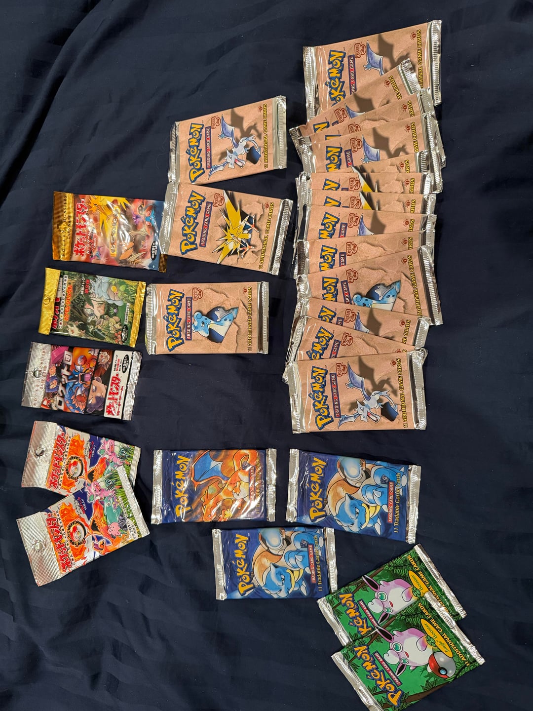 Since I know ppl will ask, the unopened packs were bought by my mom as rewards but then forgotten about until I stopped collecting and stored away with my binder and shoe boxes. All packs currently unweighed.