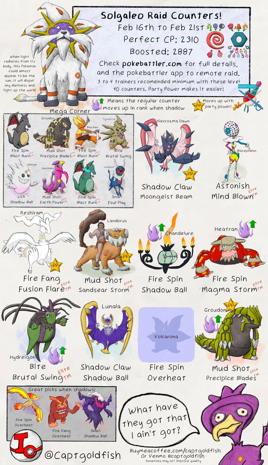 Solgaleo and Mega Sableye raid guides. Counter info from pokebattler.com by CaptGoldfish Write A CommentYou must be logged in to post a comment.