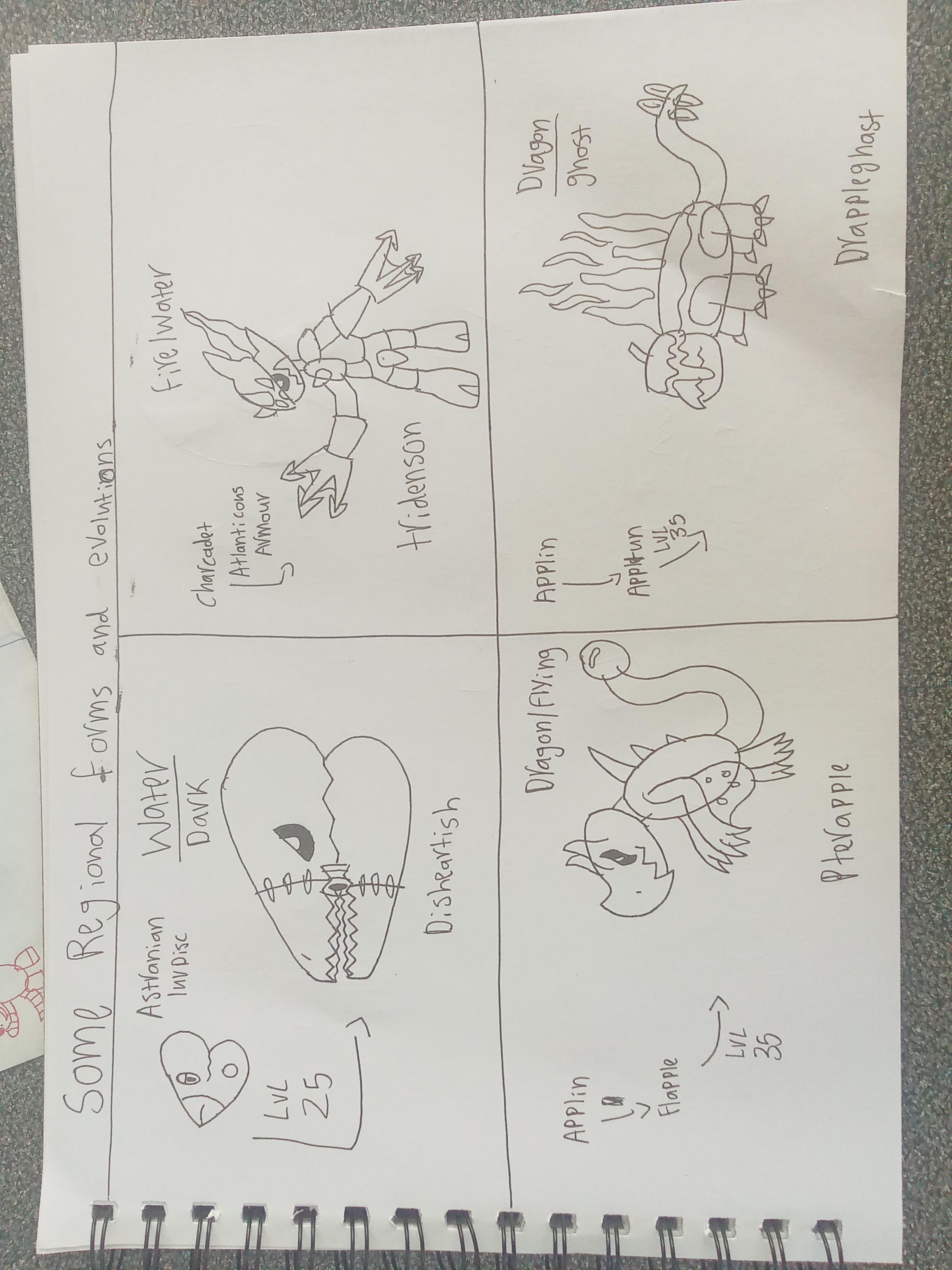 Some regional forms and evolutions in my Pokemon region(fyi,most designs from here on won’t have colour)