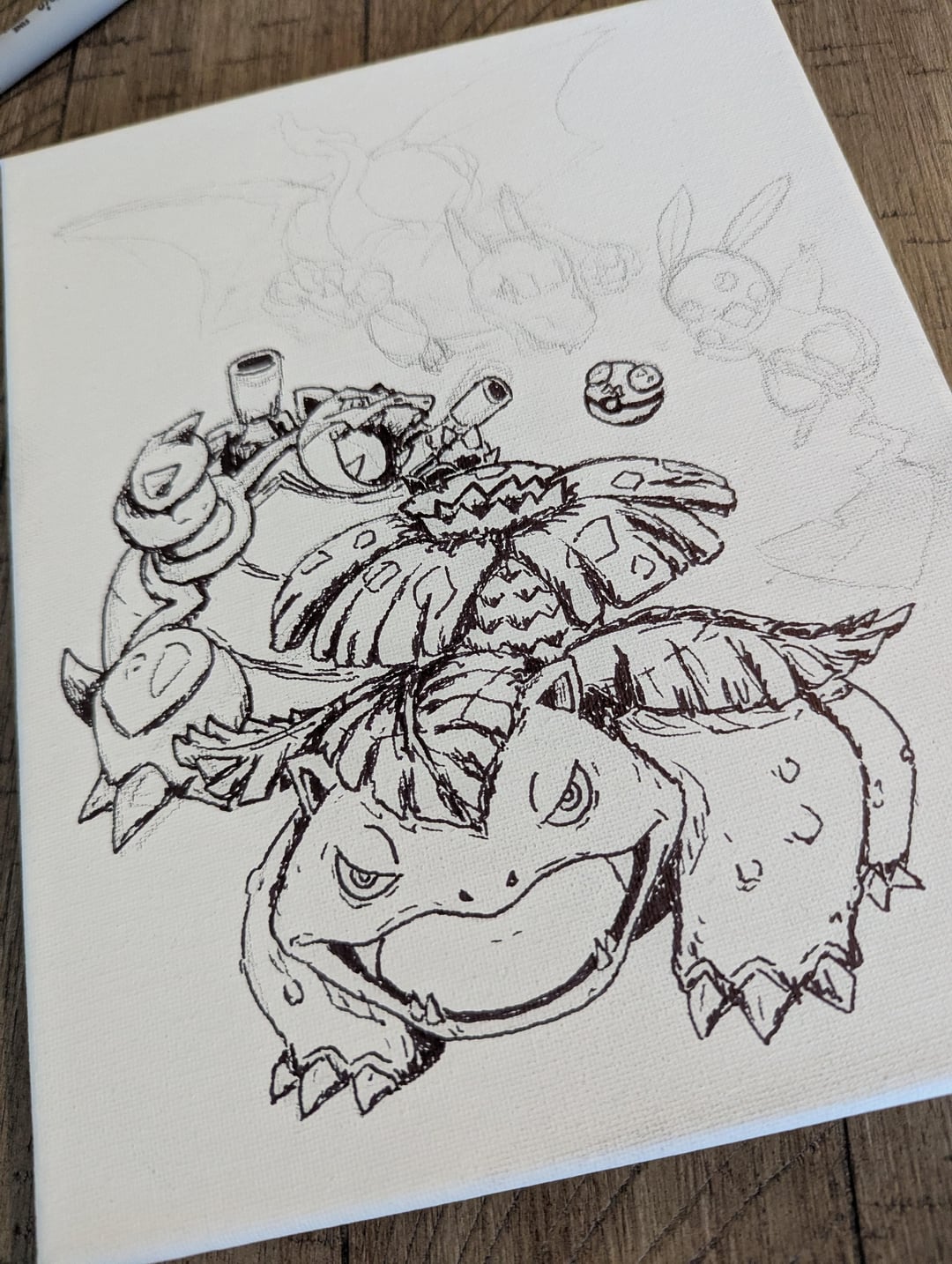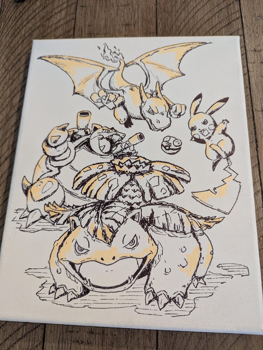 I do customized hand drawn art on canvas! This piece was hand drawn by me with pencil first, then sharpie and added color over with markers, finished with a layer of matte varnish for protection. by hamhapster Write A CommentYou must be logged in to post a comment.