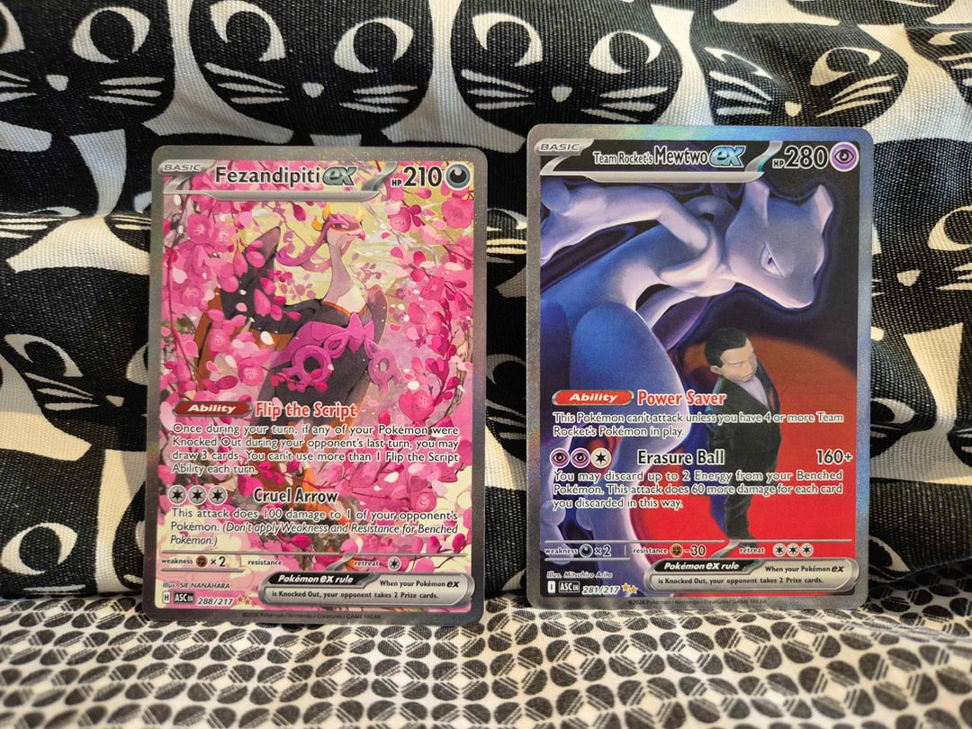 Actually can't believe it, two nights ago pulled the Fezandipiti SIR from Ascended, and then last night I pulled the Rocket's Mewtwo SIR as well. Back to back!!! In my whole year of opening 1 pack a day from this I have never had such luck. My first and second SIRs from Ascended!!