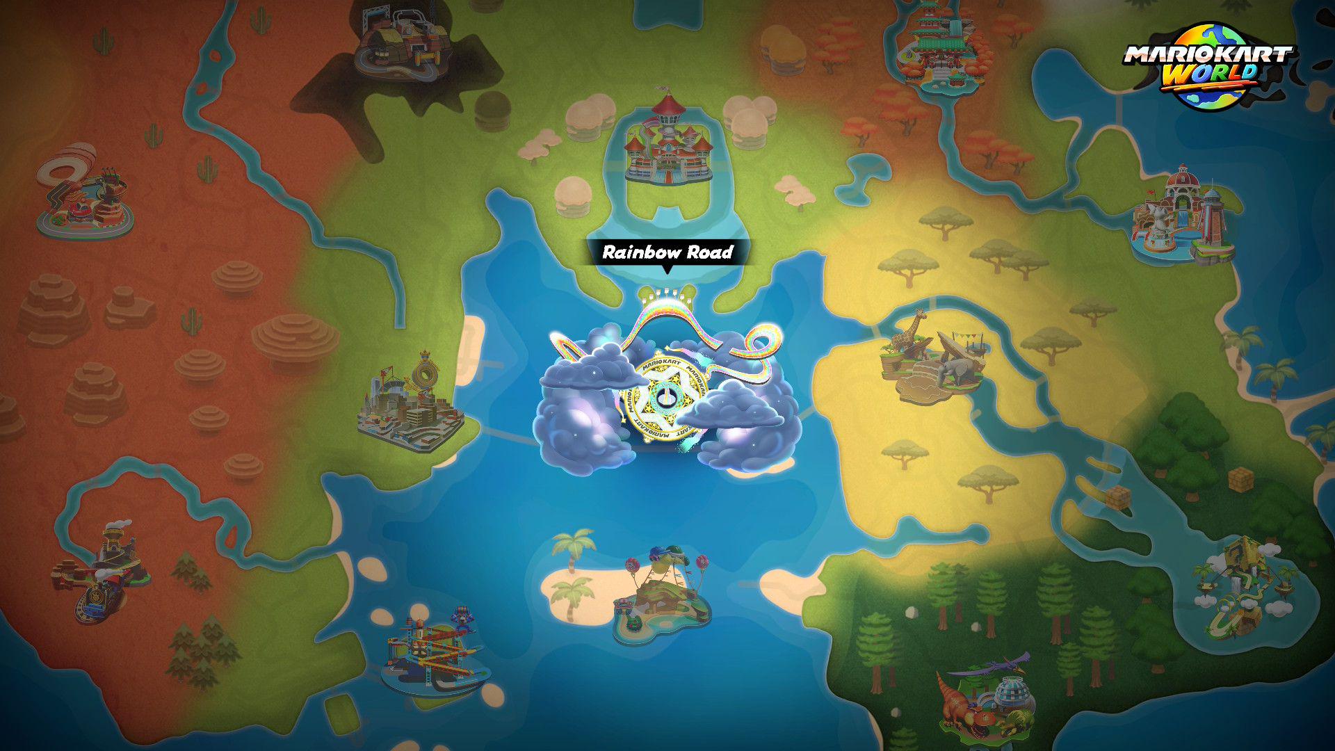 One of the first things I wanted to find out about in World was how good its Rainbow Road is. A staple of Mario Kart games going back to the Nintendo 64, these tracks flex the muscles of the new system for playing the game, pushing the graphics and performance further and further. Rainbow Roads are also known to be punishing at times, with few walls or offroad to protect you. Play these in 200cc at your peril (though no worries about that in World).