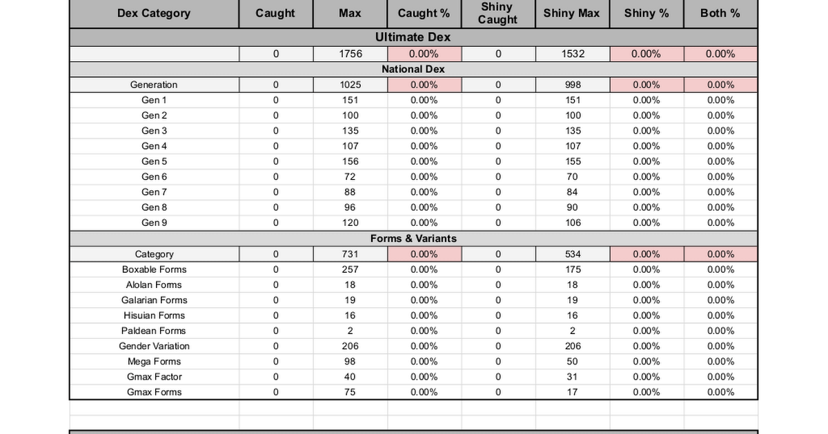 I love collecting pokemon and wanted a better way to keep track of my collection in one place. I found u/BronzeMaster5000's Ultimate Living Dex and it had most of the things I need. I added a few more pokedexs and shared them with him to add. He told me he isn't as interested in the game as he used to be, so I asked if it would be ok for me to create a fork.