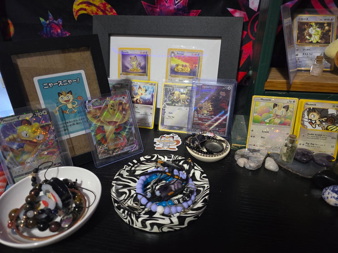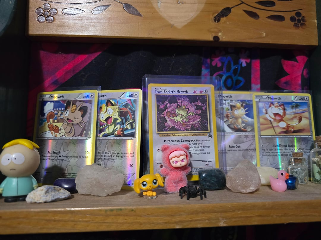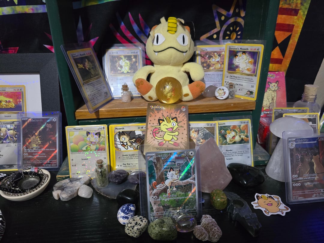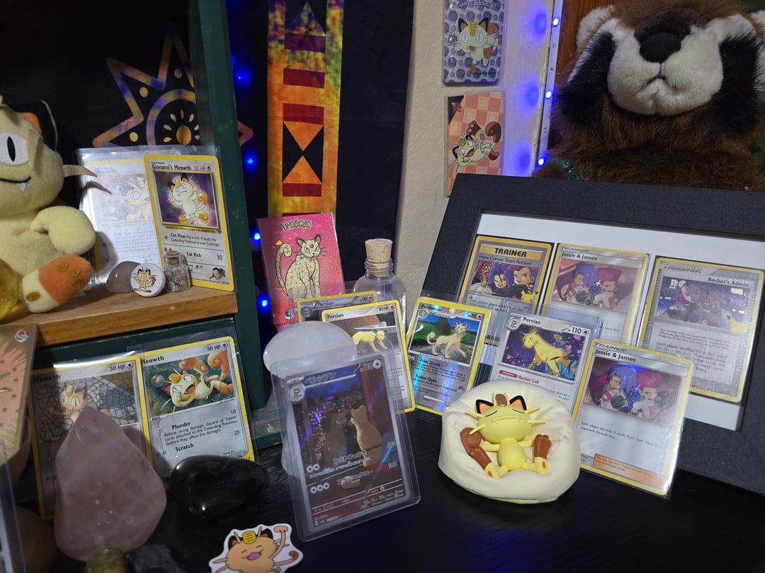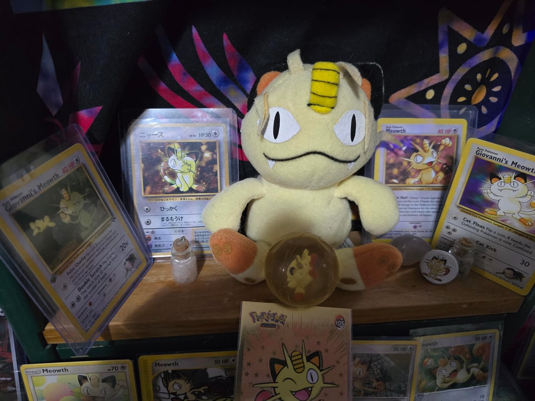 Love this guy! I have a bunch of other pokemon plushies/merchandise/cards, but Meowth is my #1!!! (Yes I have top loaders for all of them, totally forgot to put them on a couple, oops lol). by ctrl0v0peacetreaty Write A CommentYou must be logged in to post a comment.