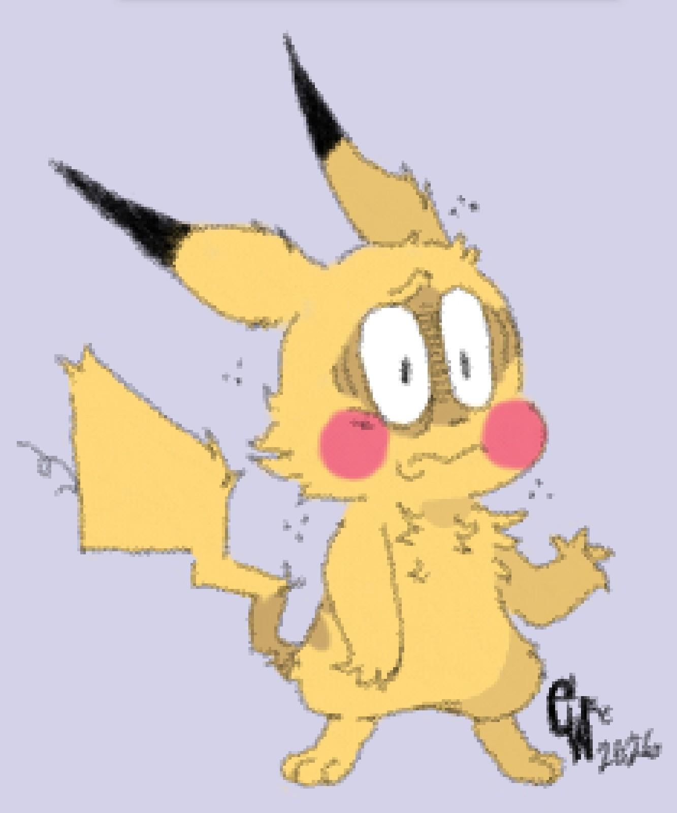 Pikachu I managed to draw with my less dominant left hand! Really useful if you want to make a character look bedraggled/tired.